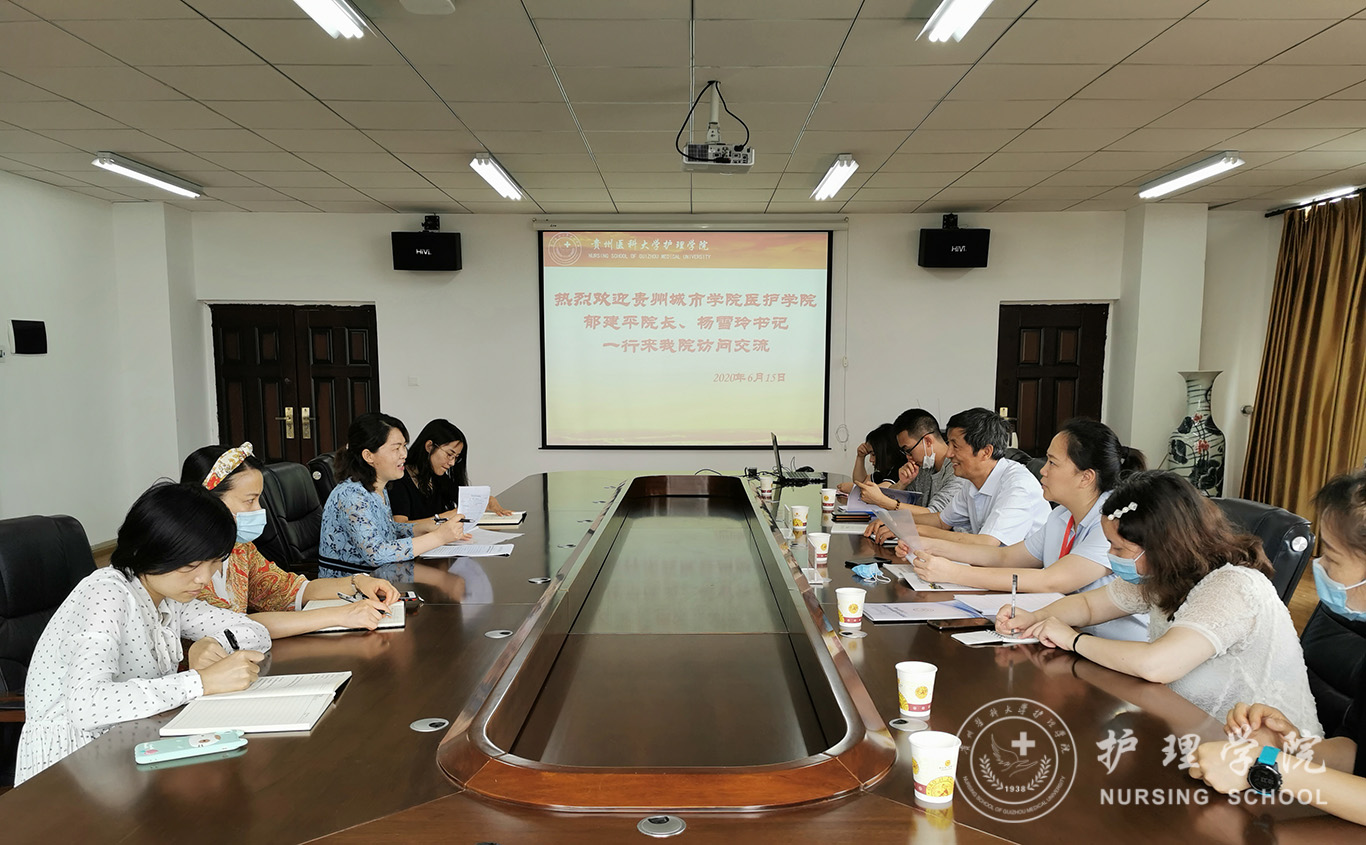 6月15日,贵州城市职业学院医护学院郁建平院长、杨雪玲书记一行七人来开云交流学习,kaiyun开云官方网站在百川楼5楼会议室召开座谈会热情接待了来访人员,会议由副院长刘志燕主持,教学科研管理科、护理学技能实验室、教研室等部门教师参加了此次交流。