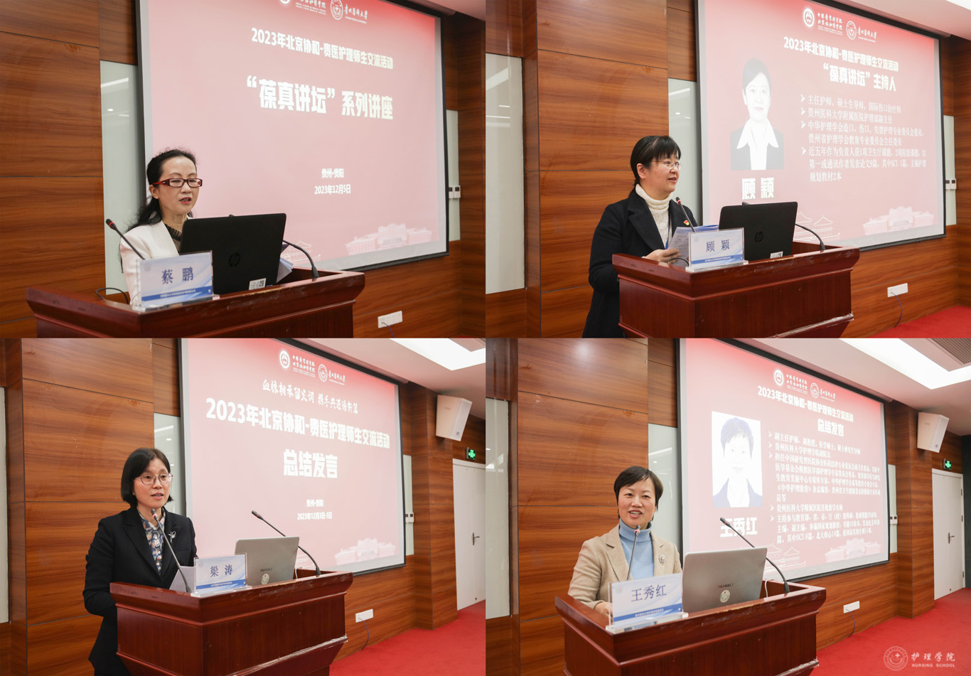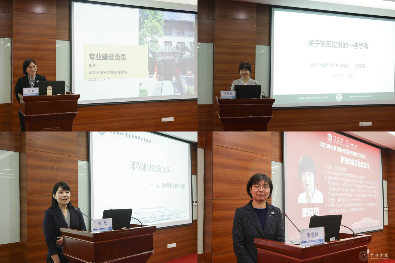 开讲仪式后,各位专家为kaiyun开云官方网站师生带来了一系列精彩的讲座。吴欣娟教授作“助力全民健康 彰显护理价值”主旨讲座;李峥教授以“协和护理与贵医-卓越护理人才培养”为题作讲座;北京协和医学院kaiyun开云官方网站副院长梁涛教授以“护理专业建设”为题作讲座;北京协和医学院kaiyun开云官方网站社区护理学系主任郭爱敏教授作学系建设分享;北京协和医学院kaiyun开云官方网站基础护理学系副主任张欣副教授结合国家级一流课程“基础护理学”的建设作经验分享;北京协和医学院护理实验中心副主任康晓凤教授介绍北京协和医学院kaiyun开云官方网站护理技能中心建设经验。