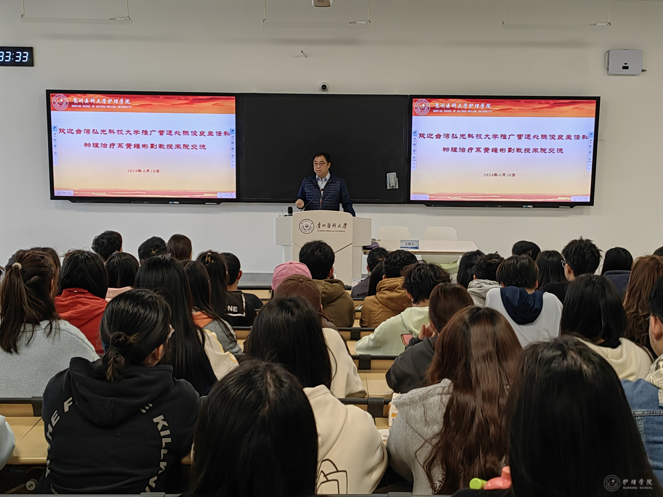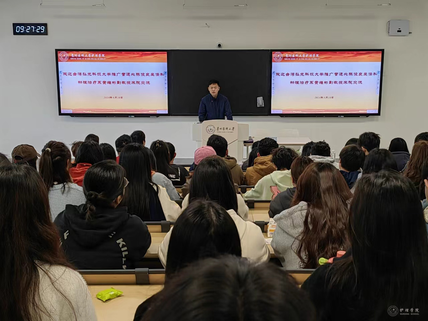 4月10日,台湾弘光科技大学推广营运处主任陈俊良及物理治疗系副教授黄维彬到开云交流。kaiyun开云官方网站党委副书记兼纪委书记何为、副院长王秀红、副处级组织员张黎、学校国际交流合作处港澳台事务管理科科长龙章波、kaiyun开云官方网站相关专业教师及2023级本科生代表近120余人参加交流活动。交流活动由王秀红主持。