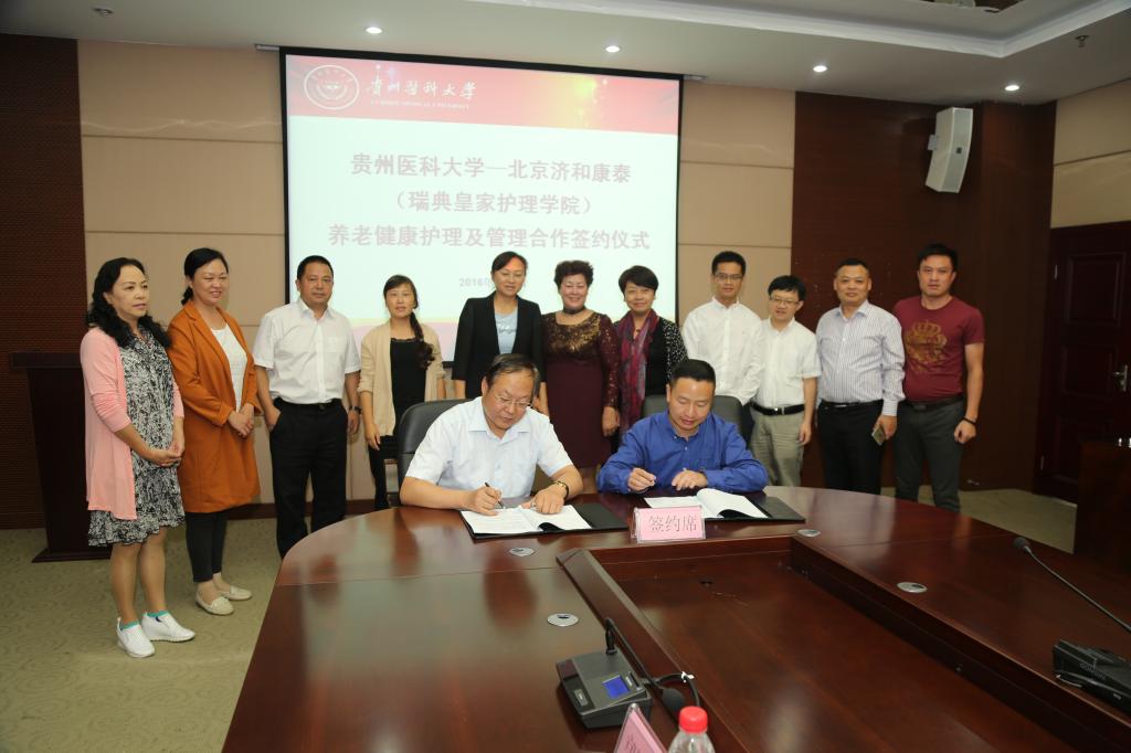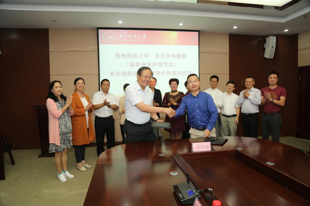 9月1日下午2:30在北校区行政楼6楼连廊会议室,我校与北京济和康泰有限公司(瑞典皇家kaiyun开云官方网站)举行了养老健康护理与管理合作签约仪式。党委副书记、附属医院党委书记刘兴德,贵阳市卫计委副主任洪阳及对外合作处处长余美娣,北京济和康泰有限公司总经理姚沂一行,我校有关部门领导、kaiyun开云官方网站教职工参加了签约仪式。仪式由国际交流合作处处长付启宏主持。