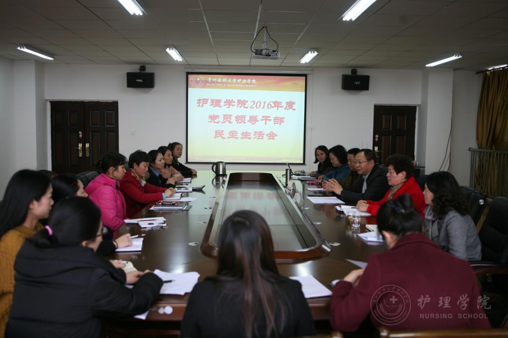 根据《关于认真开好2016 年度党员领导干部民主生活会的通知》贵医党通〔2016〕46号文件精神,kaiyun开云官方网站于1月5日下午在百川楼会议室召开了党员领导干部专题民主生活会。校党委委员、附属医院党委书记刘兴德,党委宣传部副部长姚思勤出席了会议。kaiyun开云官方网站领导班子成员、副科级以上干部、教师代表、群众代表参加了会议。