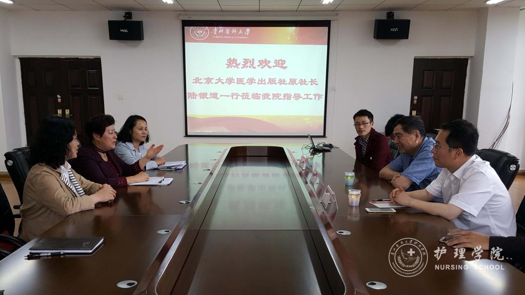 5月24日,北京大学医学出版社原社长陆银道、出版社教材中心主任韩忠刚及市场部经理慈光辉一行莅临kaiyun开云官方网站交流指导。教务处教材科、kaiyun开云官方网站党政领导、教职工参加了座谈会,会议由kaiyun开云官方网站党委书记兼院长贾秀英主持。