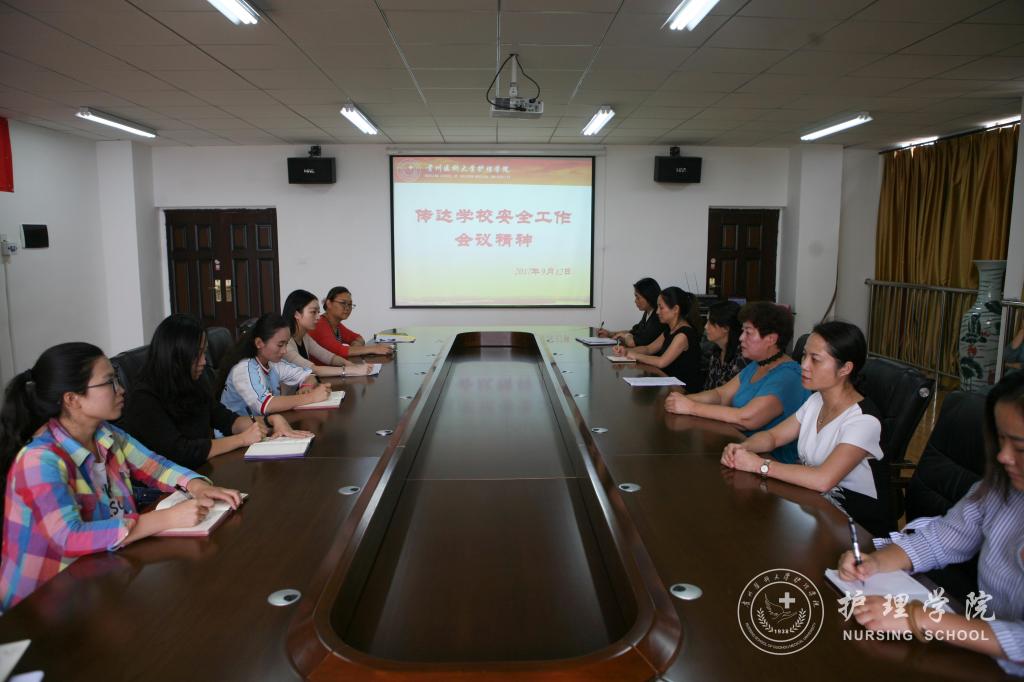 9月12日下午,开云召开安全稳定工作部署会,副书记杨英传达了学校安全稳定工作部署会精神以及校党委书记林昌虎、党委副书记战勇和副校长冉江舟的讲话内容,开云党委书记、院长贾秀英主持会议,党政领导班子和全院教师参会。
