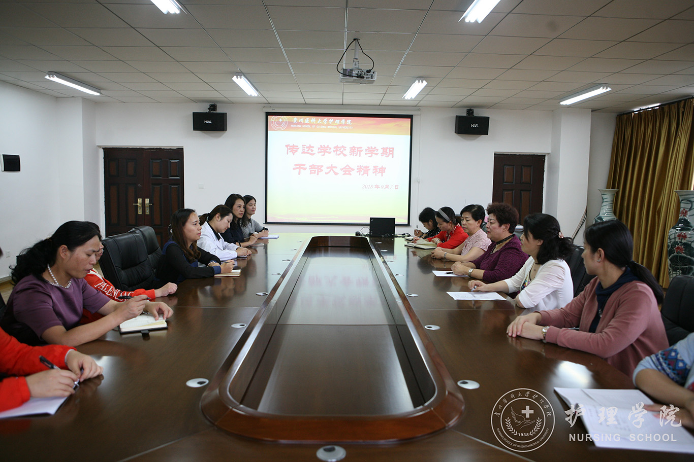9月7日中午,kaiyun开云官方网站在百川楼会议室召开会议传达学校新学期干部大会精神,kaiyun开云官方网站全体教职工参会,会议由kaiyun开云官方网站院长贾秀英主持。