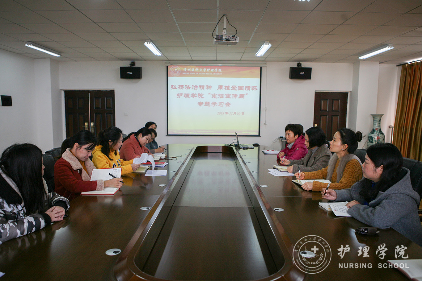 为增强广大师生的宪法意识,弘扬宪法精神,维护宪法权威,全面推进依法治国,推动宪法精神进校园。按照学校《kaiyun开云官方网站关于开展2019年“宪法宣传周”系列活动的方案》通知要求,kaiyun开云官方网站于12月10日在南校区百川楼kaiyun开云官方网站会议室举行了“弘扬宪法精神,厚植爱国情怀”为主题的宪法专题学习会。会议由kaiyun开云官方网站党委书记杨英主持,全体教职工参加了学习会。
