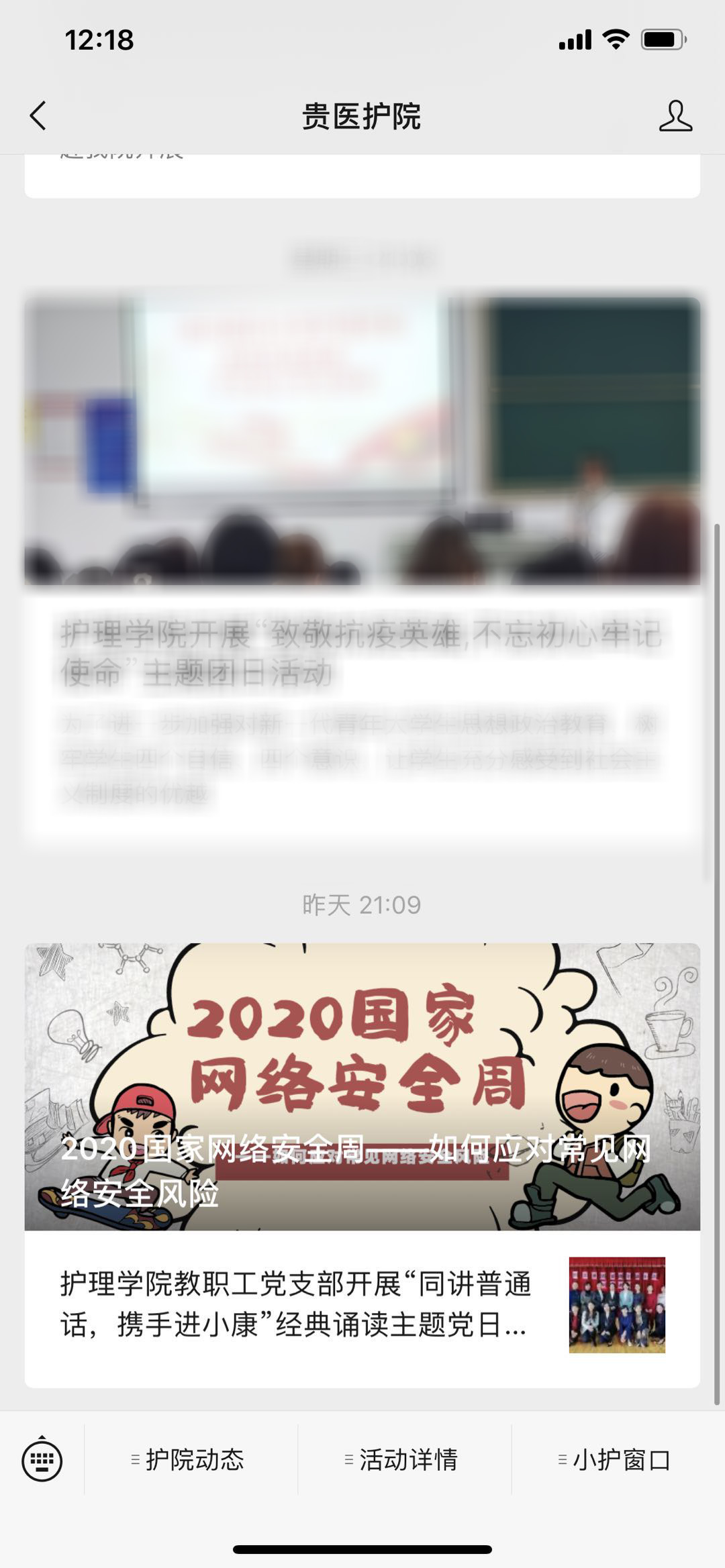 9月15日,学院学生以班级为单位开展了召开了以“网络安全为人民,网络安全靠人民”、“网络安全知识”、“健康文明上网,传递青春正能量”、“拒绝青少年网络暴力”、“校园网贷风险警示教育”等为主题的班会,加强了全院学生的网络安全防范意识。