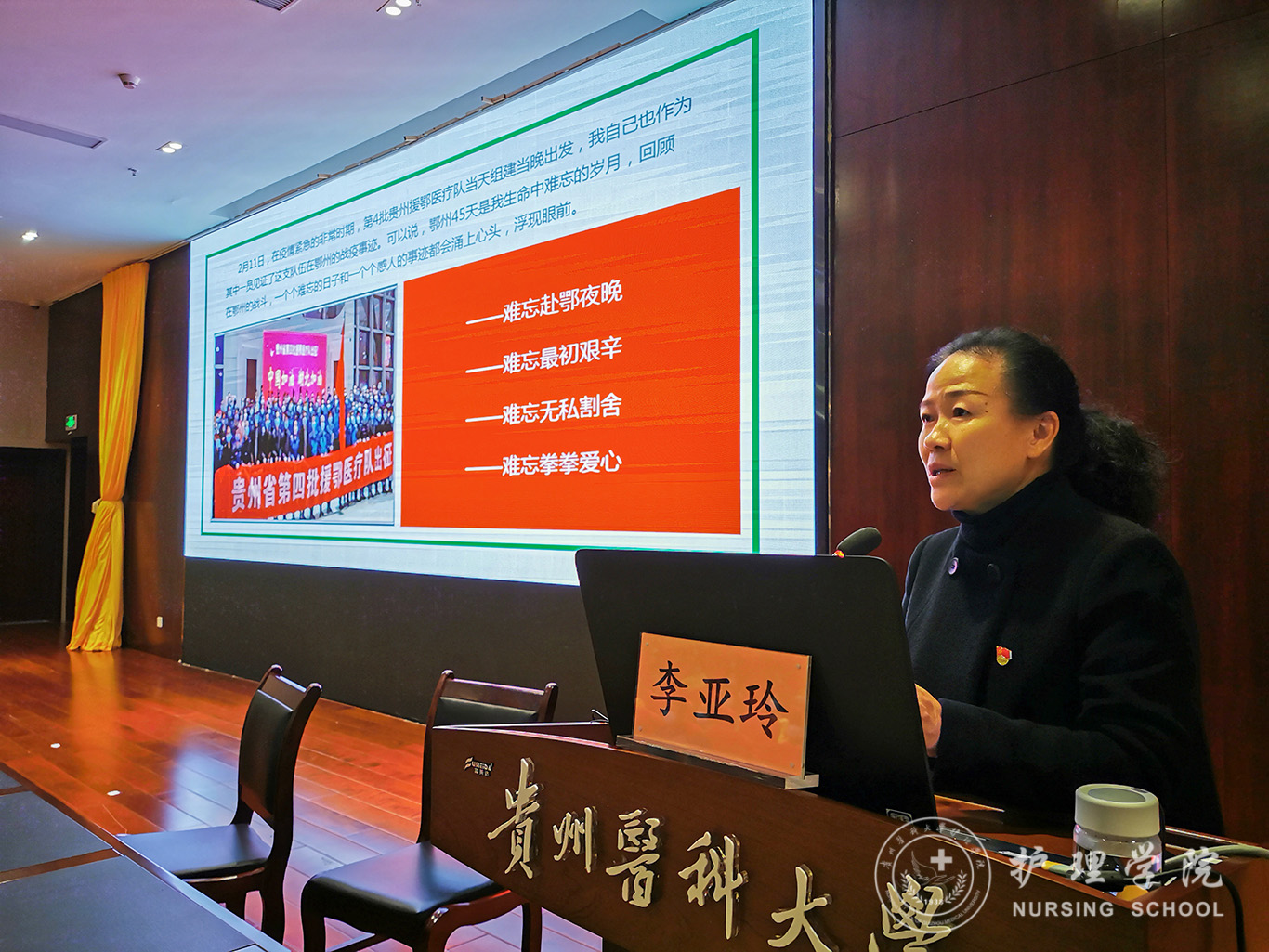 11月4日,为了在全院师生中深入学习和贯彻习近平总书记在全国抗击新冠肺炎疫情表彰大会上的重要讲话精神,也为了弘扬抗疫精神,发挥榜样作用,kaiyun开云官方网站在南校区道德讲堂举行了援鄂英雄事迹报告会。会议由院党委书记杨英主持,kaiyun开云官方网站院长、kaiyun开云官方网站附属医院护理部主任李亚玲作为援鄂医疗队代表进行主题报告。kaiyun开云官方网站全体教师及部分学生代表参会。
