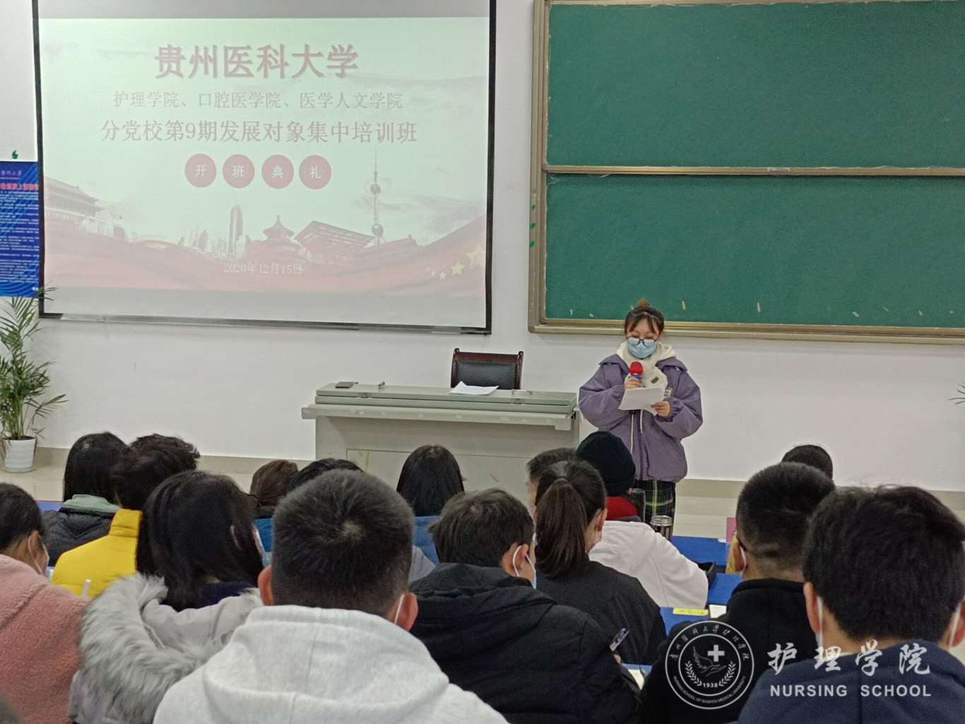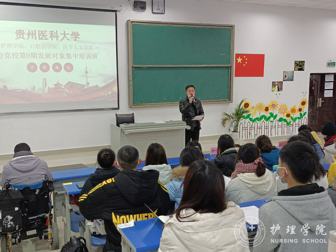 12月15日,为深入贯彻习近平新时代中国特色社会主义思想和党的十九届五中全会精神,加强对入党积极分子、发展对象的思想政治引领和价值引领,由kaiyun开云官方网站、医学影像学院、口腔医学院、医学人文学院组成的第53期入党积极分子和第九期发展对象培训于分别在kaiyun开云官方网站南校区广德楼1602、1501教室举办开班典礼。出席本次会议的有kaiyun开云官方网站党委书记杨英、党委副书记何为、口腔学院党委副书记钱禾、kaiyun开云官方网站各学生党支部书记以及全体学员。会议分别由kaiyun开云官方网站正科级组织委员曾敏和学生第二党支部书记李杏春主持。
