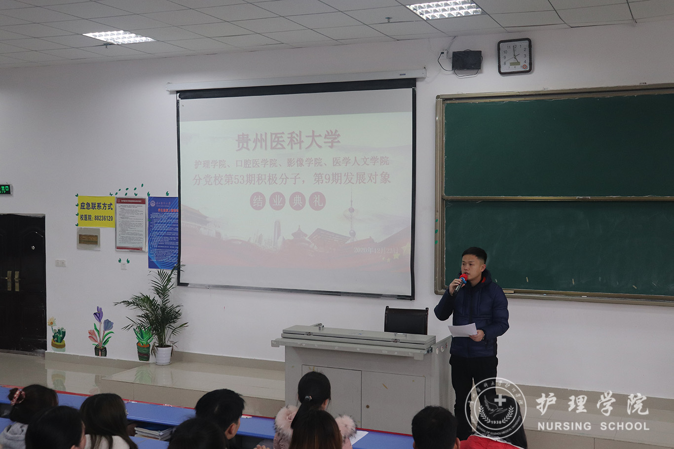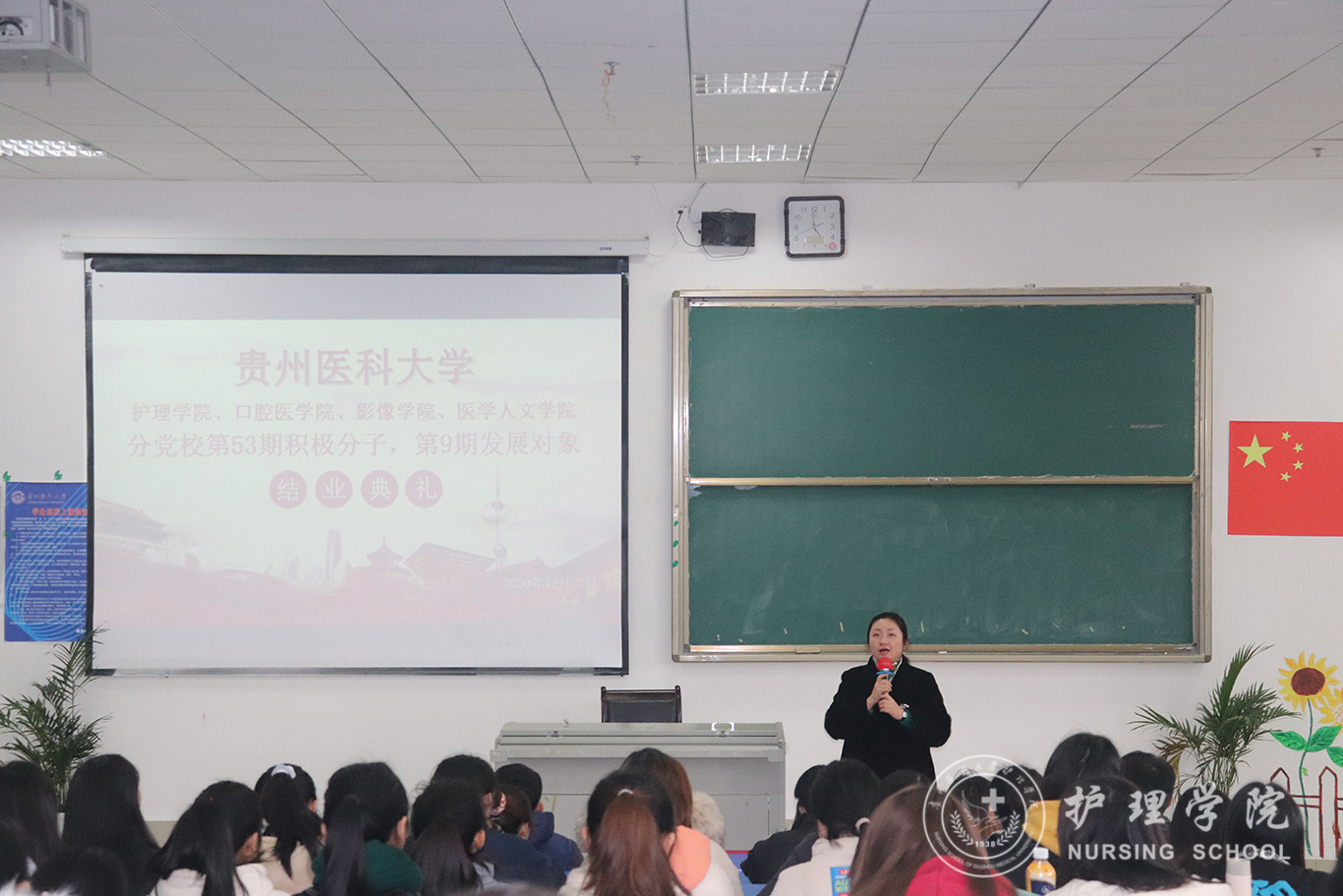 12月23日,kaiyun开云官方网站、医学影像学院、口腔医学院、医学人文学院分党校第53期入党积极分子和第九期发展对象培训班结业典礼在南校区X1501教室圆满举行,kaiyun开云官方网站党委副书记何为、学生党支部书记杨叶卿、李杏春及全体学员参加了此次会议,会议由kaiyun开云官方网站正科级组织员曾敏主持。