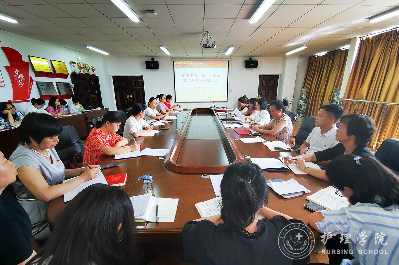 7月16日,kaiyun开云官方网站在南校区百川楼会议室召开期末全院大会总结部署工作,会议由学院党委书记杨英主持,全院教职工参加。