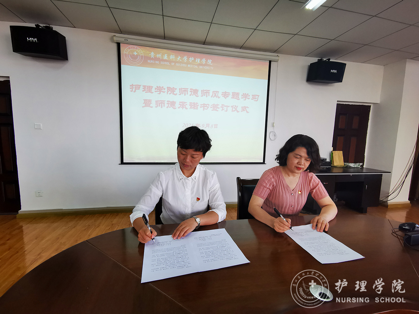 首先刘志燕副院长领学《新时代高校教师职业行为十项准则》,要求全体教职工一定认真落实,履职尽责,深入贯彻落实全国教育大会精神,进一步加强师德师风建设。接下来张仁莉解读师德教育承诺书签订的意义和要求,全院教师依次签订师德承诺书。