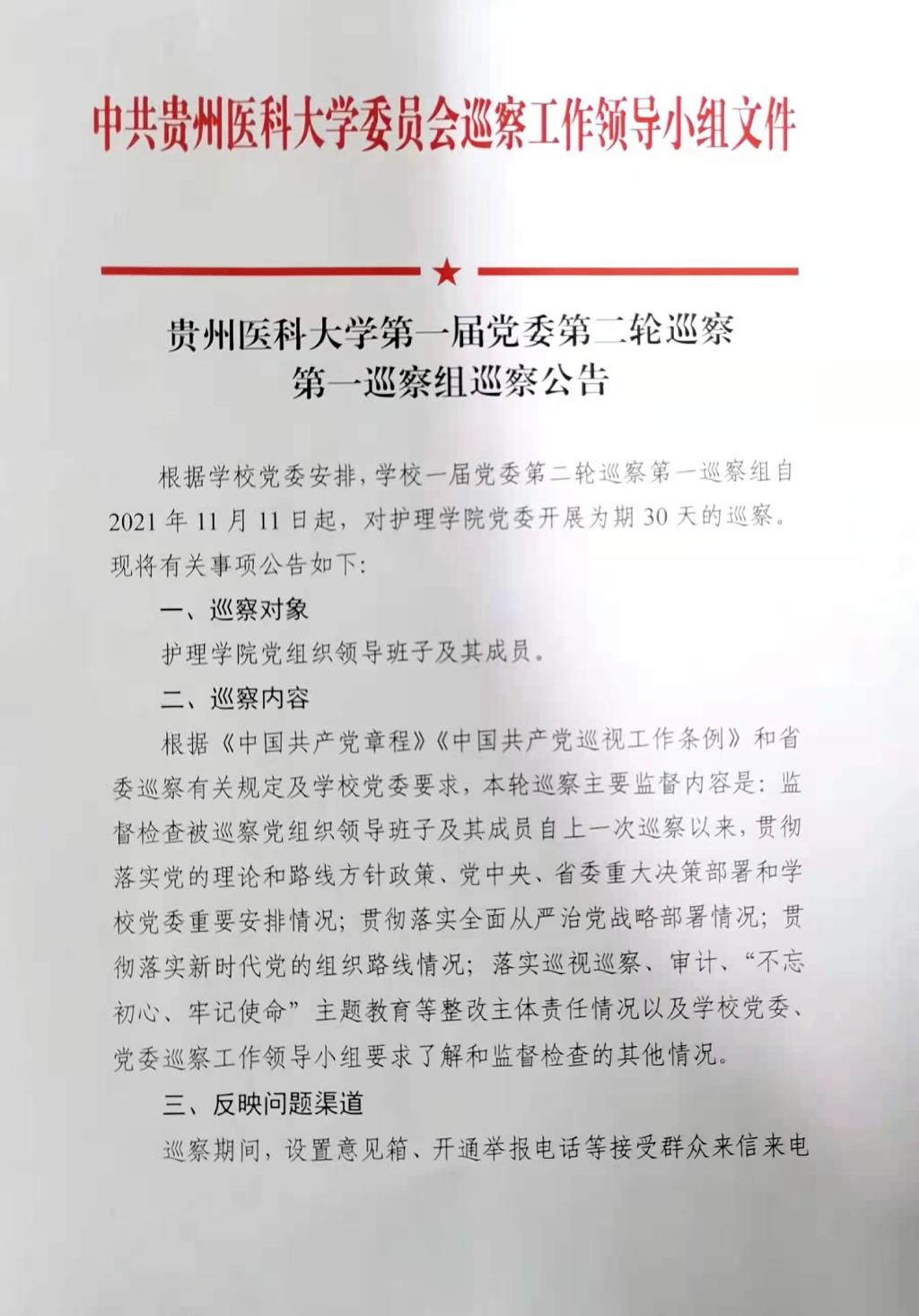 kaiyun开云官方网站第一届党委第二轮巡察第一巡察组巡察公告