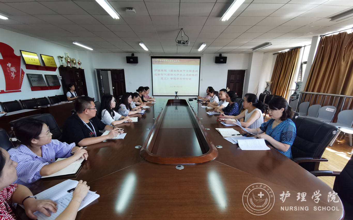 杨英领学《意见》和《省教育厅贯彻落实<国务院关于支持贵州在新时代西部大开发上闯新路的意见>实施方案》。院长李亚玲指出要深切感悟以习近平同志为核心的党中央对贵州的亲切关怀,牢牢把握《意见》的重大机遇,深刻领会文件带来的政策红利,奋力将其转化为学院高质量发展的实际成效。随后,与会人员结合学院实际对《kaiyun开云官方网站贯彻落实国发〔2022〕2号文件重点目标任务责任清单(征求意见稿)》进行认真讨论和研究。