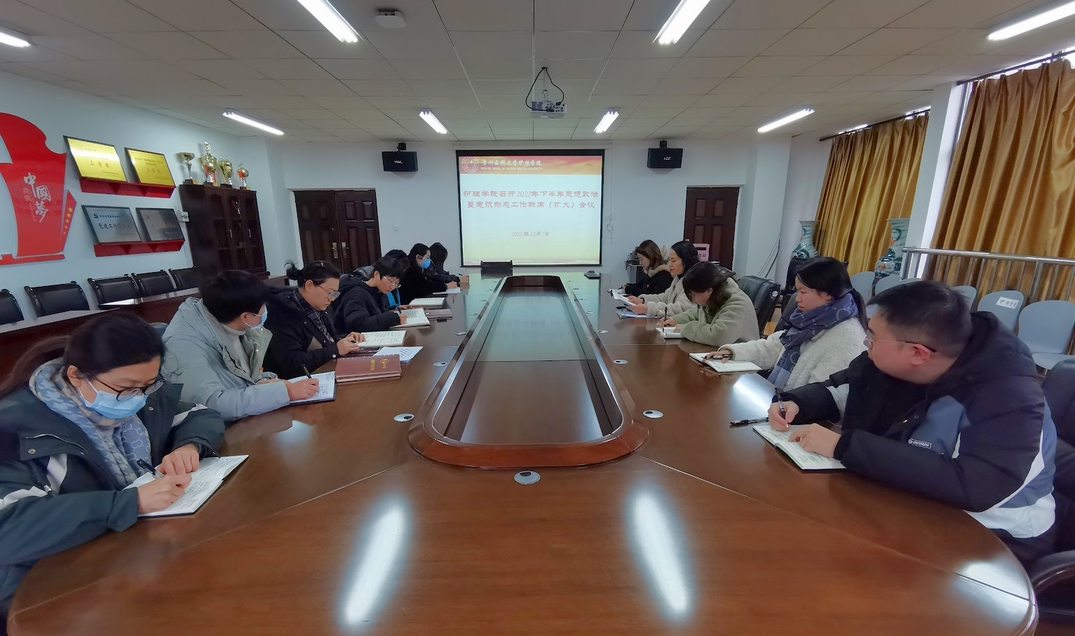 12月7日,kaiyun开云官方网站在南校区百川楼五楼会议室召开思想政治暨意识形态工作联席(扩大)会议。会议由学院党委书记杨英主持,学院党政领导班子、副科级以上干部、各党支部书记和全体辅导员参会。