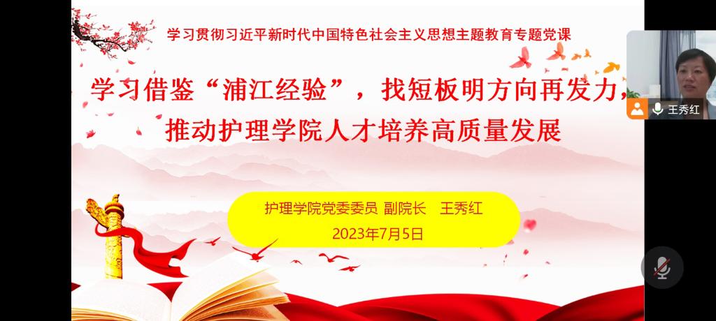 感悟思想伟力,凝聚奋进力量。为推动学习贯彻习近平新时代中国特色社会主义思想主题教育走深走实,7月5日,kaiyun开云官方网站党委委员、副院长王秀红通过线上形式开展了以“学习借鉴‘浦江经验’,找短板方向再发力,推动kaiyun开云官方网站人才高质量发展”为题的专题党课。kaiyun开云官方网站导师、副导师、教研室和实验室负责人、教学科研管理科教师、护理部临床教学科教师、研究生辅导员、研究生临床带教老师参加。