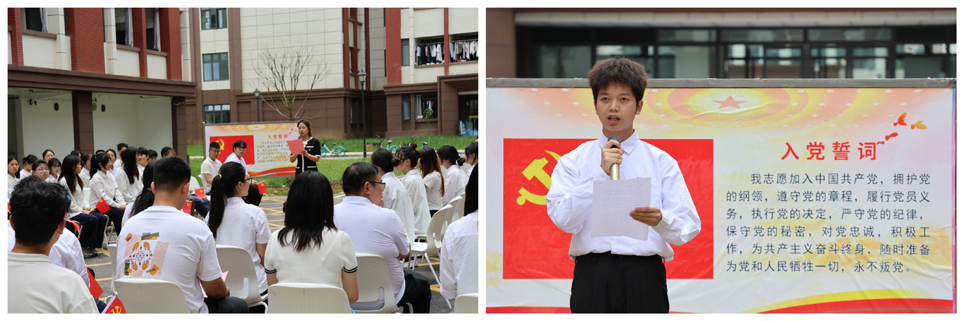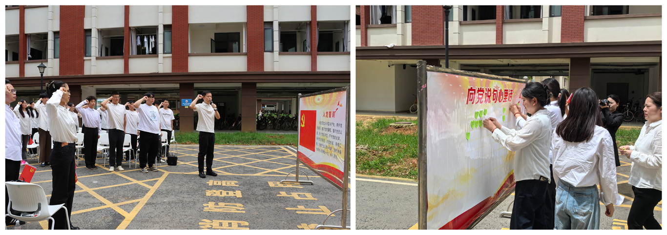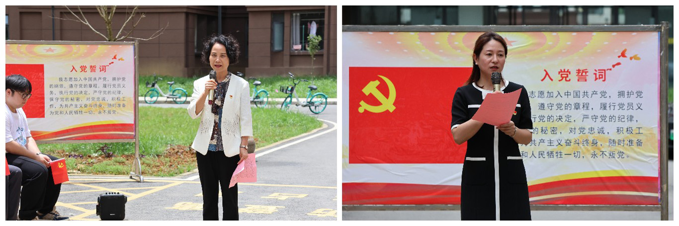 7月1日,为庆祝中国共产党成立104周年,深化学院-社区党建合作。kaiyun开云官方网站与马场镇七星湖社区在云漫湖校区联合举办“青春心向党 誓言筑忠诚 奋进新征程”党建联建活动。kaiyun开云官方网站党委书记杨英、党委副书记兼纪委书记何为等学院领导、师生党员,与七星湖社区党支部书记王朝松、妇联主席黄薇等社区代表齐聚一堂,以红色初心共赴这场特殊的“生日之约”,活动由kaiyun开云官方网站副处级组织员张黎主持。