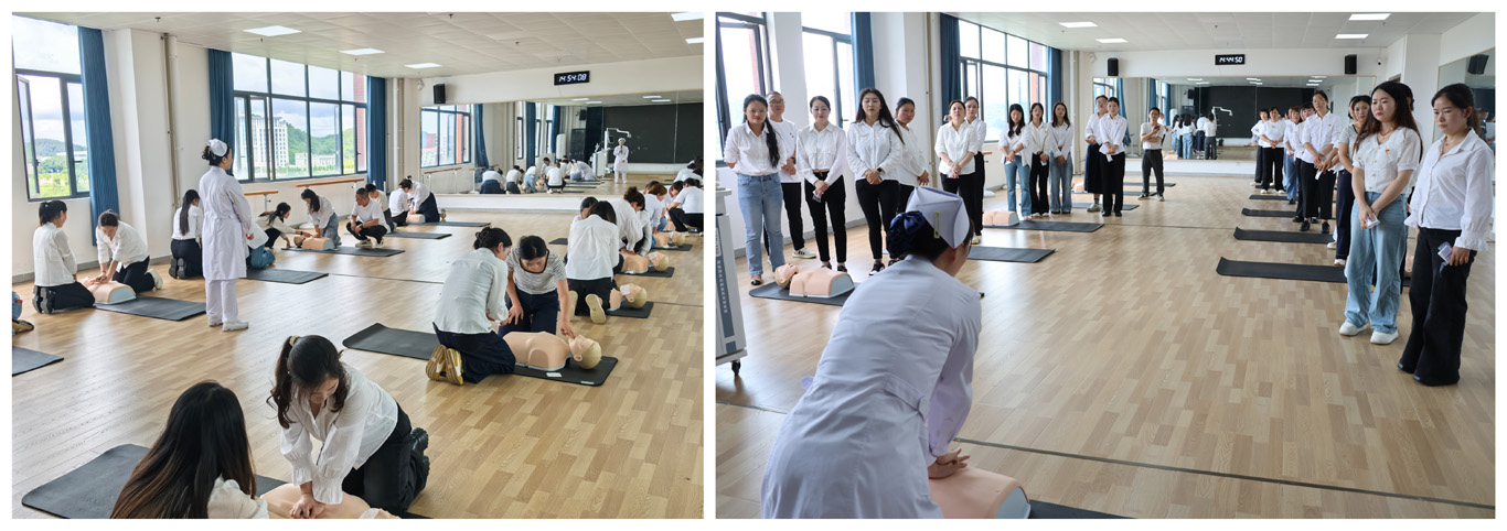 仪式尾声,全体人员齐唱《没有共产党就没有新中国》,将现场氛围推向高潮;仪式结束后,学院教职工党支部、学生第三党支部联合社区工作者培训心肺复苏急救技能,将党建与实践服务深度融合。