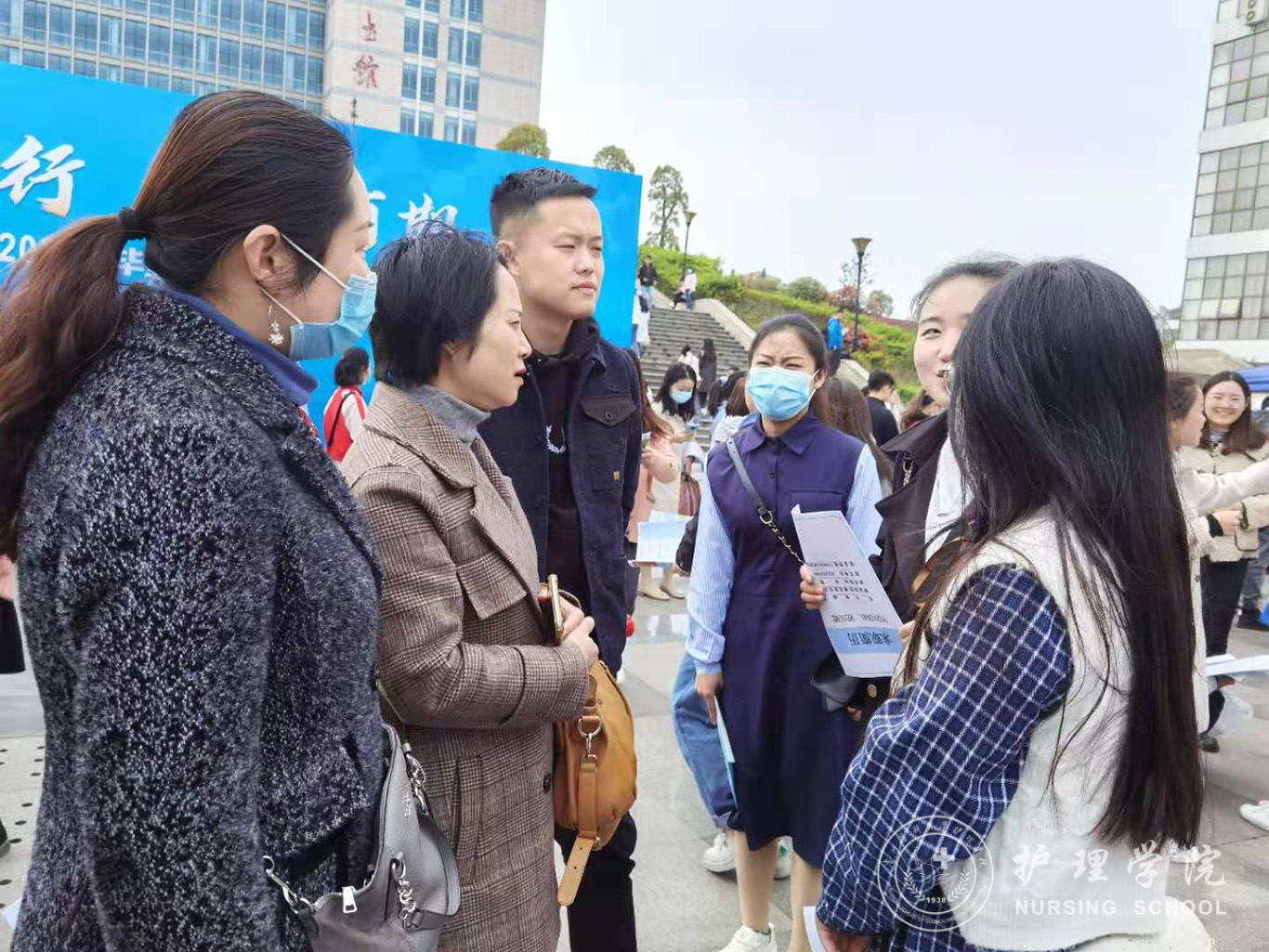 3月23日,“载梦前行,未来可期”kaiyun开云官方网站2021年春季大型校园招聘会在南校区图书馆前广场如期举行。为更好推进开云就业工作,服务广大2021届毕业生,kaiyun开云官方网站党委书记杨英、党委副书记何为、正科级组织员曾敏、综合办公室副主任李颖、妇儿科护理学教研室副主任刘林敏、学生科副科长毕丽、团委副书记兼校本部毕业班辅导员王晓玲、全体辅导员及部分建档立卡指导老师到招聘会现场指导毕业生应聘求职。