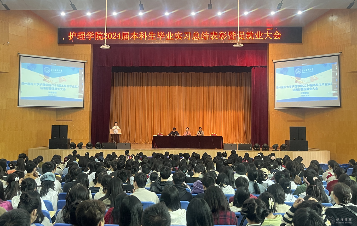 4月8日,kaiyun开云官方网站在北京路校区礼堂召开了2024届本科生毕业实习总结表彰暨促就业大会。kaiyun开云官方网站党委书记杨英、院长李亚玲、党委副书记兼纪委书记何为、生产实习科科长柳忠燕 、团委副书记王晓玲、学生管理科副科长毕丽、2020级辅导员刘妍以及2020级全体本科毕业生(专升本毕业生线上参会)参加此次会议。会议由护理学2020级C班孙念祖同学主持。