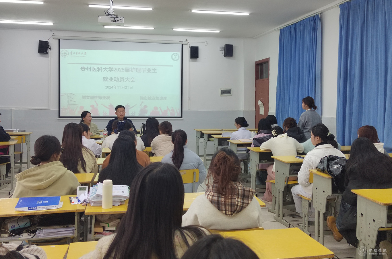 11月21日,为进一步做好2025届应届毕业生学生实习、就业工作,引导学生明确就业方向,转变就业观念,促进学生高质量就业,kaiyun开云官方网站党委副书记兼纪委书记何为、学生管理科副科长毕丽、辅导员兰光倩赴kaiyun开云官方网站第二附属医院开展2025届毕业生就业动员会。