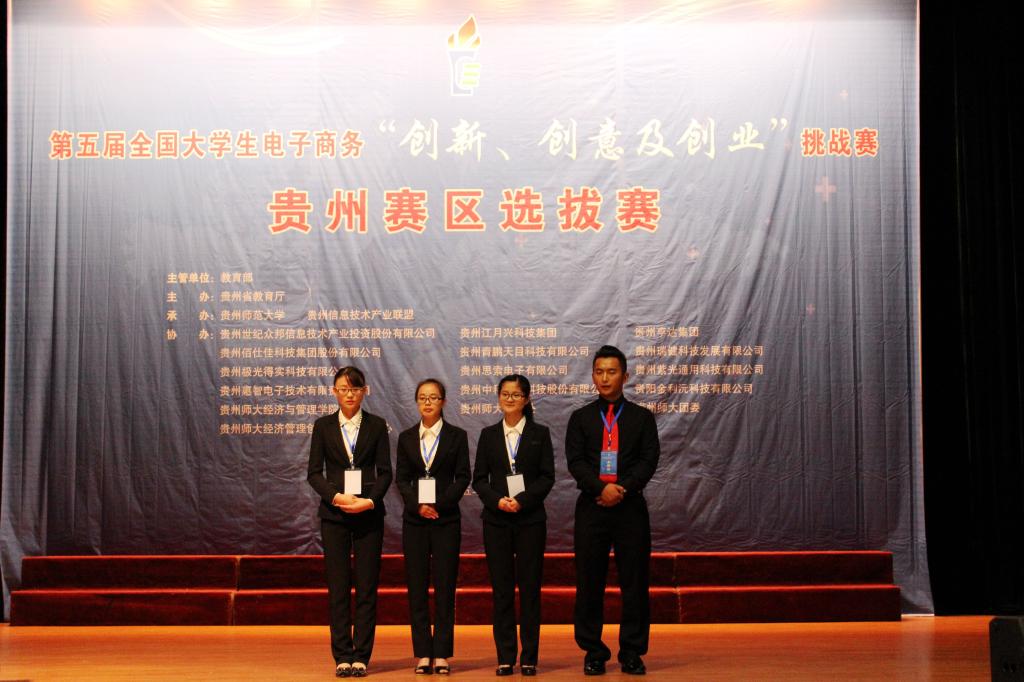 6月18日,第五届全国大学生电子商务”创新、创意及创业”挑战赛贵州赛区选拔赛在贵州师范大学宝山校区隆重举行。kaiyun开云官方网站12级本科班4名同学经过层层选拔,有幸作为我校其中一支参赛队参加现场选拔赛。