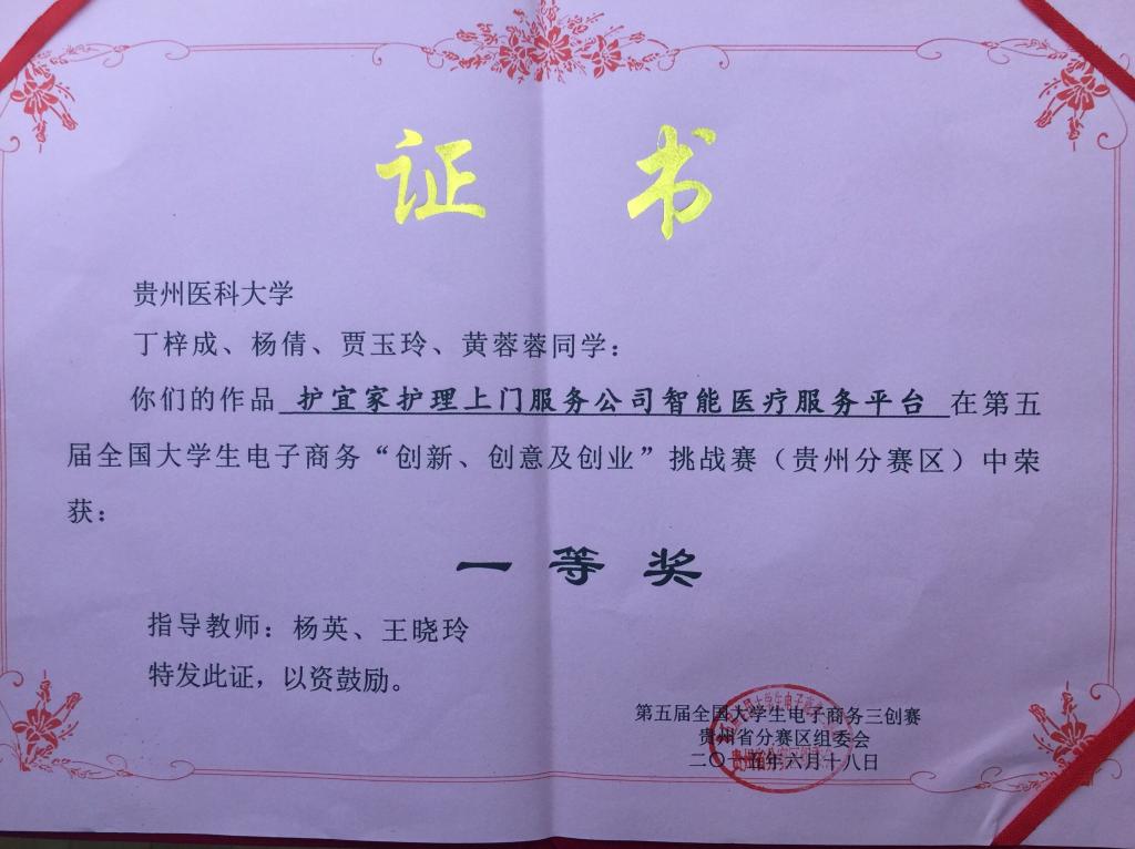 此次大赛共有来自全省各高校六十多支队伍参赛。在项目现场展示过程中,开云代表队向现场评委及同学进行了简短、精炼的介绍。随后,在答辩现场,开云学子以饱满自信的精神状态完成了PPT演示和现场答辩环节。经过评委们的认真评审,开云2012级贾玉玲、黄蓉蓉、杨倩、丁梓成同学的作品《护宜家护理上门服务公司智能医疗服务平台》荣获一等奖殊荣。