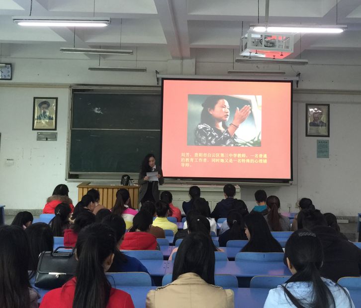 会上,王晓玲宣读了贵阳市白云区第三中学教师刘芳同志的感人事迹。刘芳是一位爱岗敬业的女教师,在风华正茂、事业有成的年纪患上了一种可致眼部失明的疾病,但是刘芳用生命拥抱阳光,她把许多正能量传递给了她身边的人。她的这种对梦的坚持,对生命的延续,对学生的关爱,深深的感动着在座的每一位同学和老师。