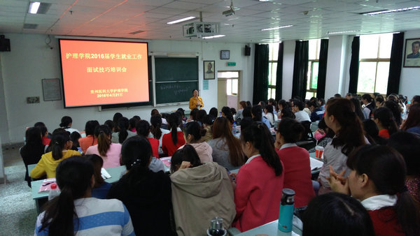 为了加强开云2016届毕业生就业工作,2016年4月21日,开云在北校区3301教室举行了一场别开生面的毕业生工作面试技巧培训会,会议邀请了贵医附属医院组织人事处陈柯老师给毕业生做了简要培训,会议由学生科科长曾敏老师主持,2016届全体毕业生参加了本次培训会。