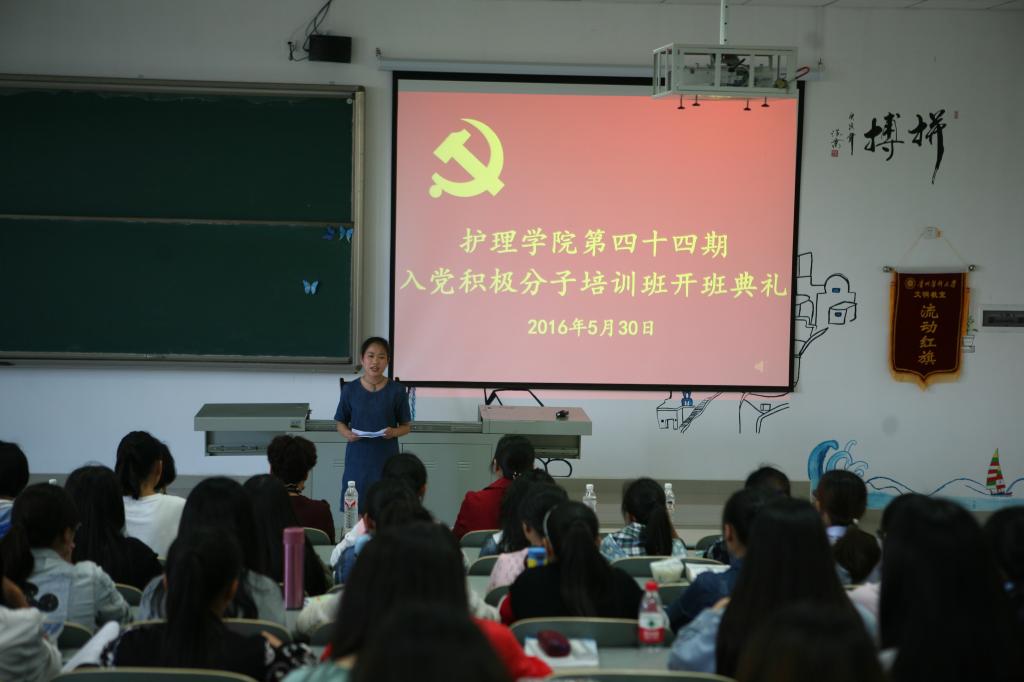 5月30日下午17:00,kaiyun开云官方网站第四十四期入党积极分子培训班开班典礼在7205号教室举行。kaiyun开云官方网站党委书记贾秀英、党委副书记杨英,学生科长曾敏、学生党支部书记李海林、王晓玲及131名入党积极分子参加了典礼,典礼由杨英书记主持。