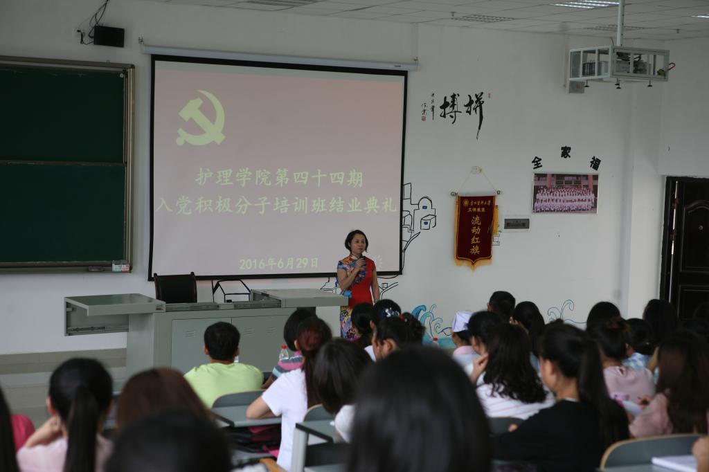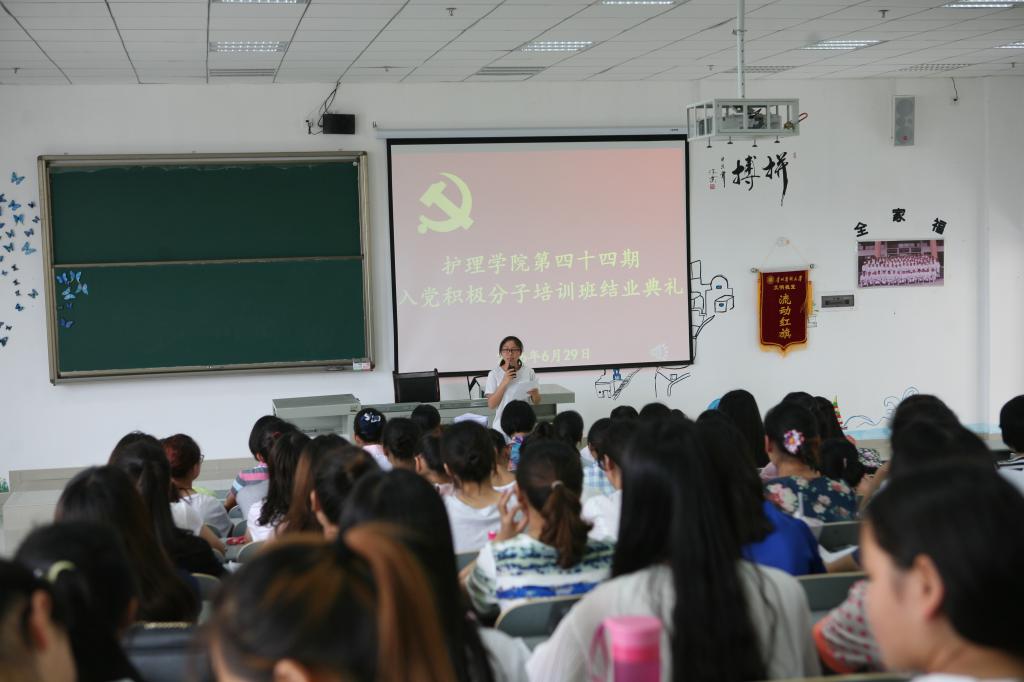 6月29日,kaiyun开云官方网站第四十四期入党积极分子培训班结业典礼在X7205教室举行,kaiyun开云官方网站党委副书记杨英、学生科科长曾敏、综合办公室副主任张常喜、学生党支部书记李海林、王晓玲及131名学员参加了典礼。典礼由王晓玲老师主持。