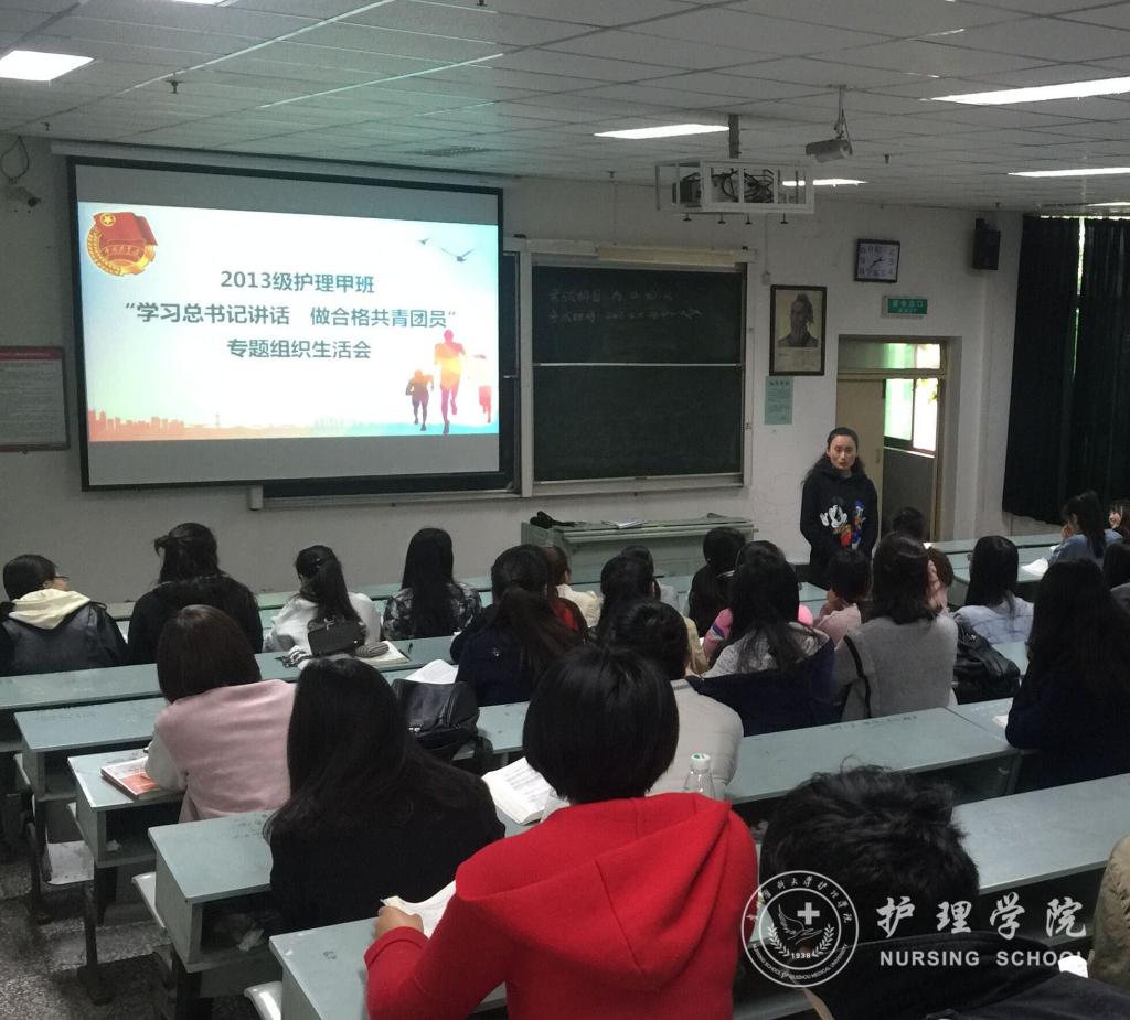 4月21日下午15时,kaiyun开云官方网站在北校区3301教室举行了“学习习近平总书记重要讲话,做合格共青团员”专题组织生活会,参会的有kaiyun开云官方网站分团委负责人王晓玲老师和2013级护理甲班全体同学。