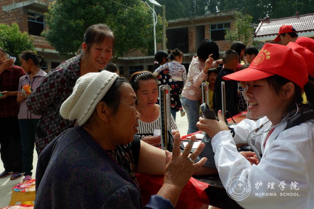 第二天,服务队一行来到了昌明镇白马村,为当地村民开展了“援民健康,赠医赠药”义诊活动、“关爱留守儿童,畅想美好未来”和“关爱空巢老人,慰问革命前辈”活动,获得了当地群众的高度评价。在这里,同学们感受到了当地少数民族的朴实、感受到了留守儿童们的纯真与善良,也感受到了奉献社会的价值和力量,更加珍惜来之不易的幸福生活和拥有的宝贵读书机会,进一步提升了同学们对护理专业的认同感与责任感。最后,杨英对本次社会实践活动进行了总结。她对同学们的辛勤付出给予了肯定,同时也对同学们提出了几点希望:第一,希望同学们将理论与实践结合起来,做到学以致用。第二,希望同学们增加对护理学专业的热爱与认同,在今后的工作中获得成就感,实现自己的人生价值。第三,希望大家努力学习专业知识,提升专业素养,以更好地服务群众,奉献社会。