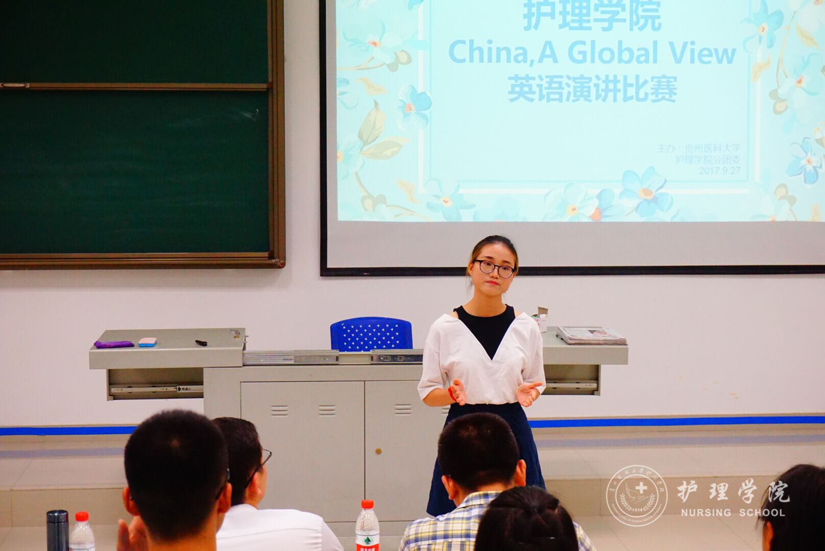 9月27日下午6:30分,开云在南校区4403教室举行了“China,A Global View”英语演讲比赛。本次比赛由外国语学院教学科研管理科副科长何晓涛老师和kaiyun开云官方网站2017级辅导员马景瑶老师担任评委,学生会礼仪部薛露露同学担任主持,14名选手参加了本次比赛。