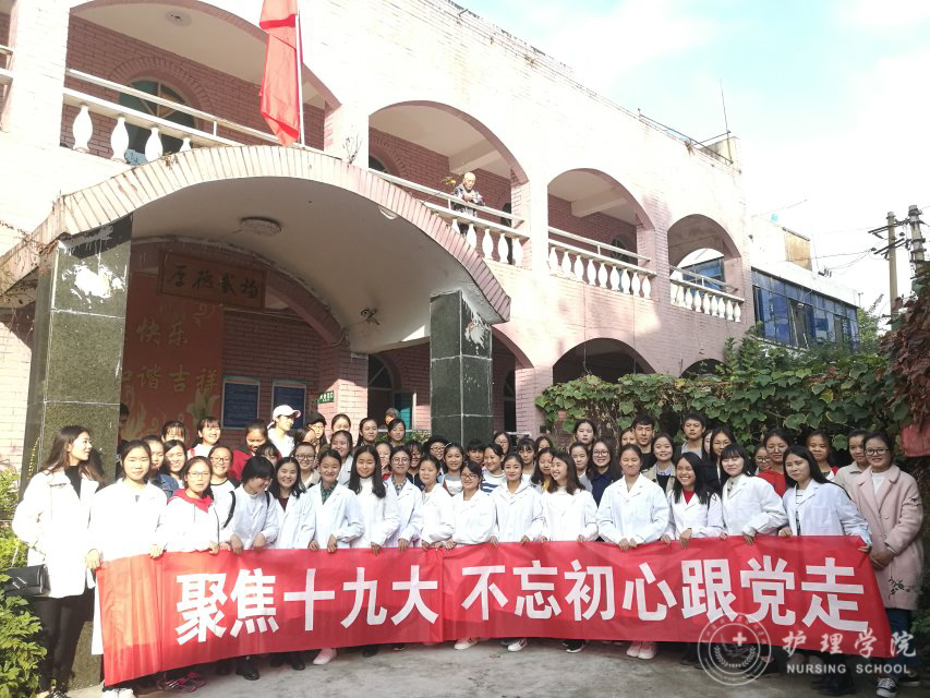 为深入学习贯彻党的十九大精神,营造积极健康、文明和谐的校园文化氛围,引导学生党员不忘初心跟党走,担当时代使命,为夺取新时代中国特色社会主义伟大胜利贡献力量。kaiyun开云官方网站学生党支部策划了“聚焦十九大,不忘初心跟党走”系列主题活动。2017年11月11日,系列活动之“宣讲十九大 护理关爱行”在贵阳市云岩区康颐养老院开展, 50余名学生党员和发展对象代表参与了本次活动。