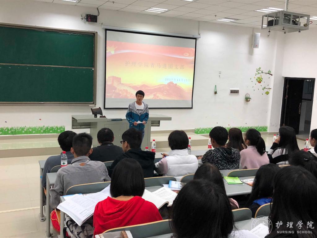 11月15日下午18:00,kaiyun开云官方网站在南校区7405教室开展了“青马宣讲进团支部”的活动,参与的人员有2017级各班班长、团支部书记及2017级护理学丙班全体同学。本次活动由学生会副主席尹本渊主持,青马社宣讲团成员李昱林同学进行了宣讲。