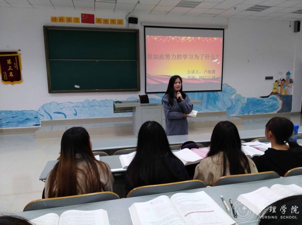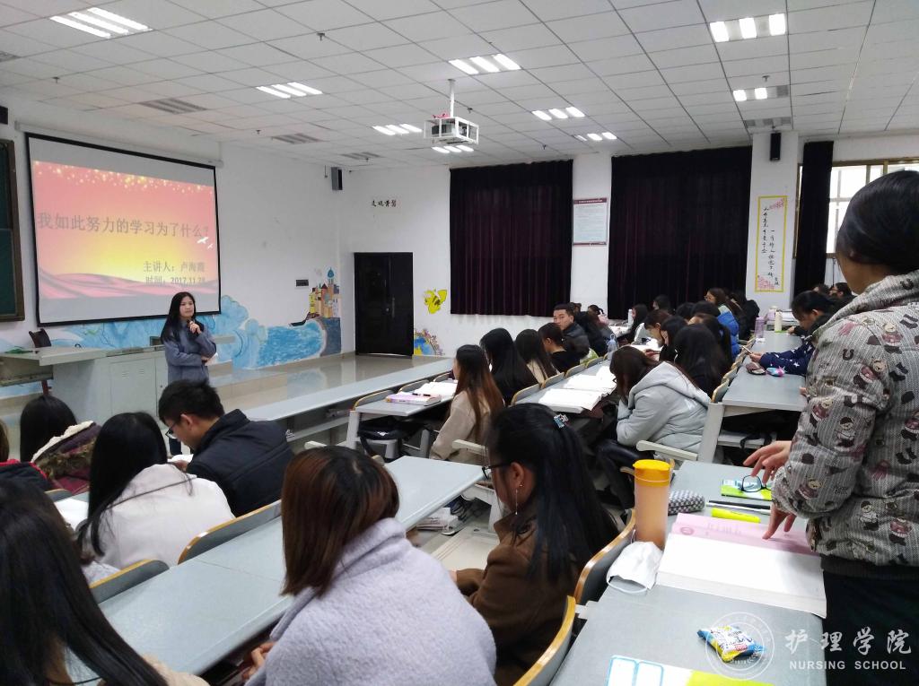 为进一步夯实新时代大学生理想信念基础,指明前进方向,找准人生坐标,kaiyun开云官方网站于11月28日中午12:00在南校区4404教室开展“牢记使命、明确目标、追逐梦想、拼搏奋进”主题班会活动。班会由班主任卢海霞主讲,2016级护理乙班全体同学参加。