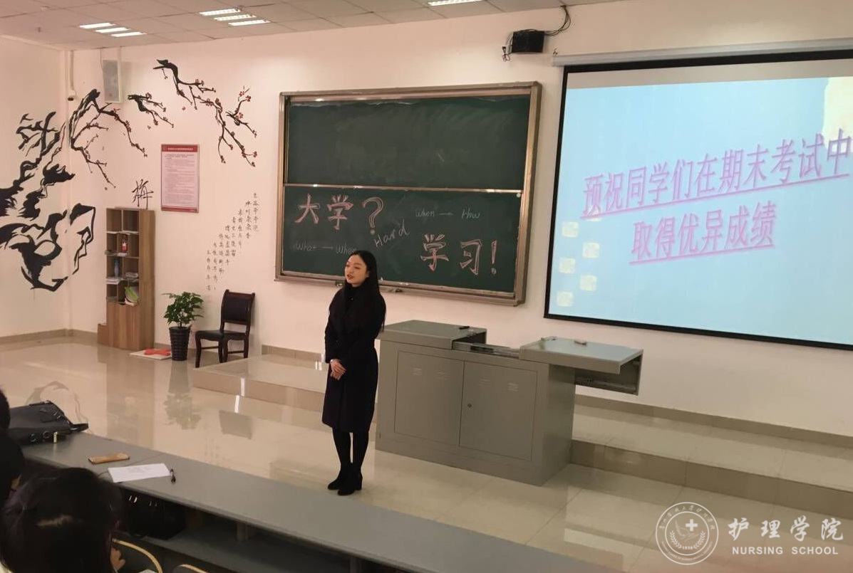 11月27日中午,kaiyun开云官方网站在南校区7406教室开展了“定目标、抓学风、稳思想”主题班会活动。班会由辅导员马景瑶、2017级甲班崔玉琪主持,班主任吴俊主讲,2017级护理甲班全体同学参加。