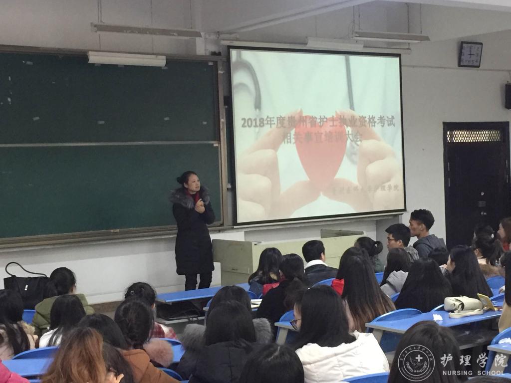 2017年12月14日下午,kaiyun开云官方网站在北校区2402教室召开了“2018年护士执业资格考试培训会”,本次培训会分为“2018护考题型分析”、“护士执业资格考试报名相关事宜培训”和“实习生恳谈会”三个部分,kaiyun开云官方网站副院长刘志燕、生产实习科科长柳忠燕、护理学专业教师李红和2014级全体护理实习生参会,会议由学生科科长曾敏主持。