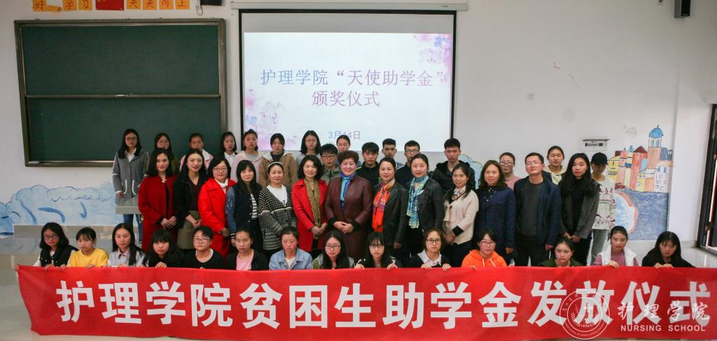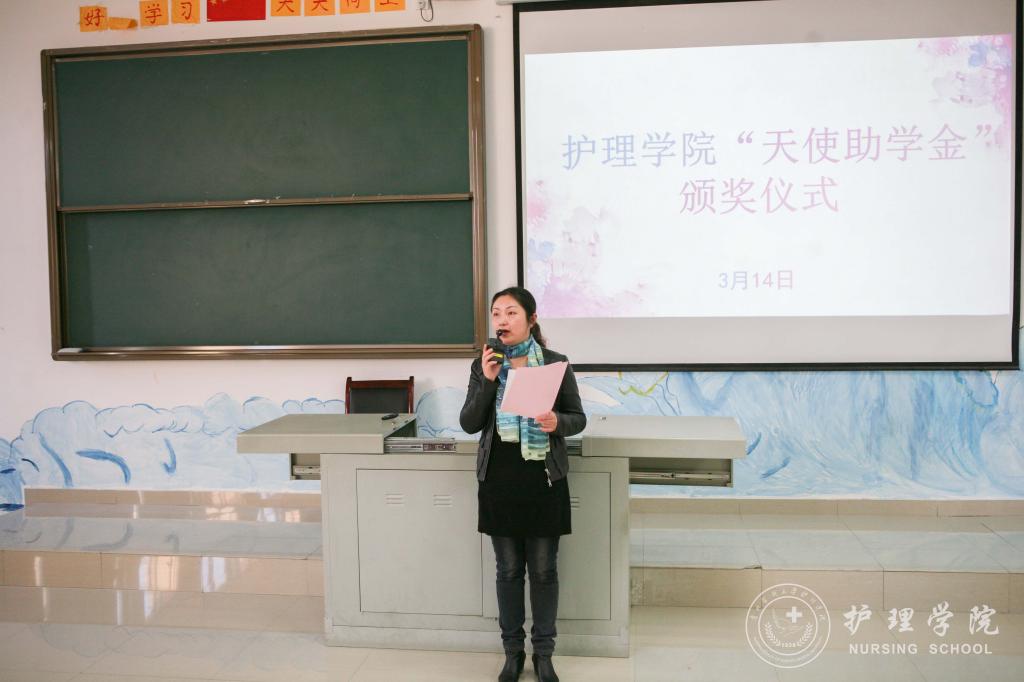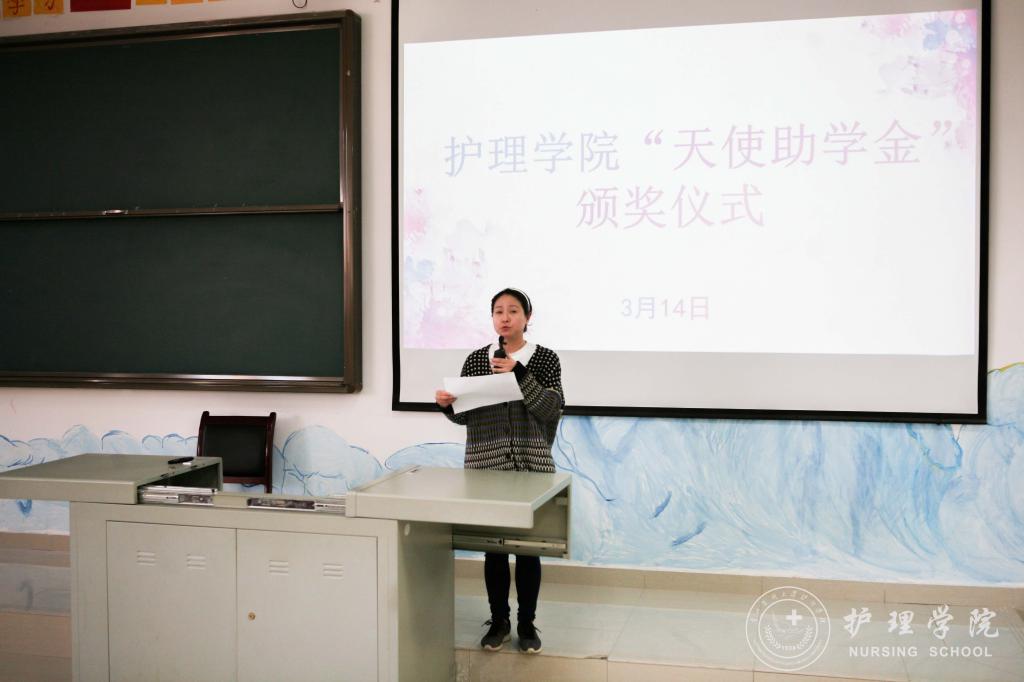 首先,学生科科长曾敏介绍了“天使助学金”的由来,并转达了“天使助学金”主要资助人浙江大学附属邵逸夫医院,从事护理工作25年的秦建芬老师对同学们的期望:“护理工作是助人的工作,一位好的护士,对患者而言,就是好的药物,所以尽自己的这一点绵薄之力,能够对同行的兄弟姐妹们的学业生活有所帮助,希望同学们能够更好地为患者提供照护。”接着,kaiyun开云官方网站综合办主任张黎宣读了kaiyun开云官方网站“天使助学金”的受助名单。张黎鼓励同学们要心怀感恩、努力学习、乐观生活,以优异的成绩来回报师长和秦女士的关心与帮助。最后,2017级护理学乙班同学黄虹久代表受助同学发言,向关心和帮助困难同学的秦女士和领导、老师表示崇高的敬意和衷心的感谢。她代表受助同学承诺:要牢记校训、院训,学好专业知识,增强实践能力,提高道德修养,为成为一名优秀的白衣天使打下坚实基础,争取在以后的工作中更好地服务人民、回报社会。