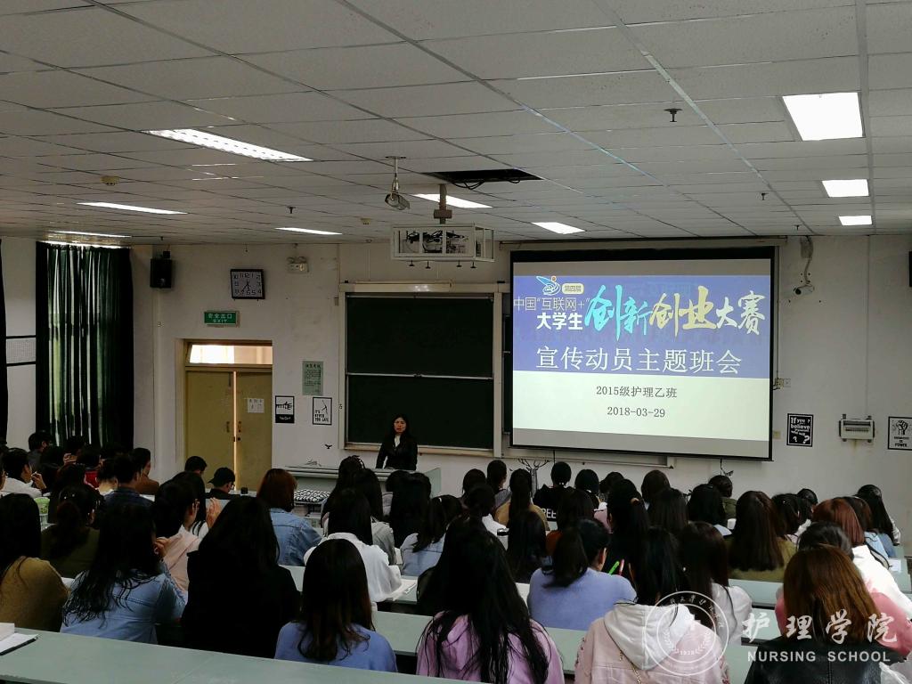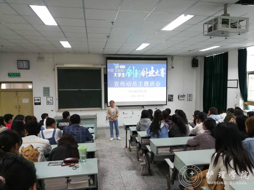 为提高同学们的创新创业意识,培养同学们创新创业的素质和能力,kaiyun开云官方网站于3月29日下午5:30在北校区3302教室举行了第四届“互联网+”大学生创新创业大赛宣传动员主题班会。班会由班主任李红老师主讲,2015级护理乙班全体同学参会。