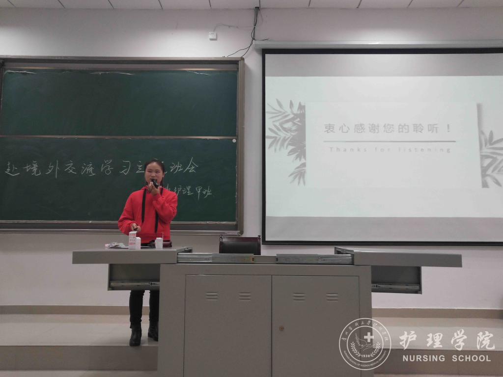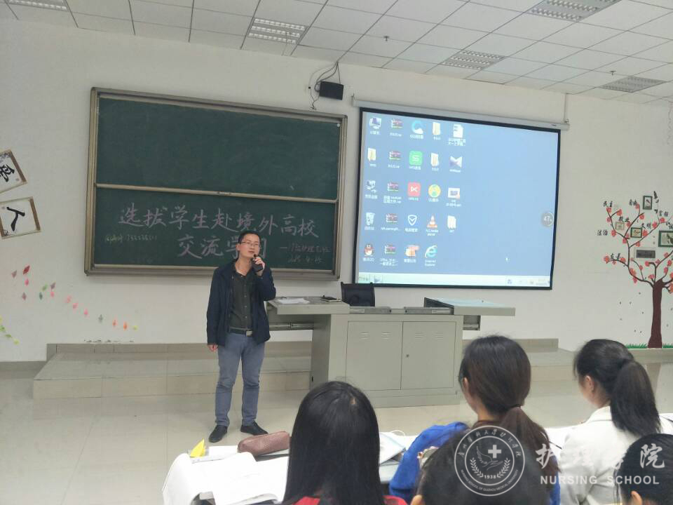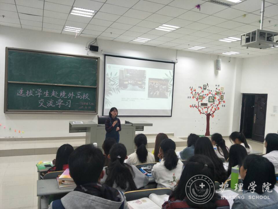 为扩大kaiyun开云官方网站与境外院校的交流,提升学院的人才培养水平,4月25日,kaiyun开云官方网站在南校区7404、7405、7406教室开展选拔学生赴境外高校交流学习主题班会活动。2017级护理学甲班、乙班、丙班全体新生,2016级苏梦婷、周婷婷、田崟颖同学参加了班会。本次班会由2017级辅导员马景瑶主持。