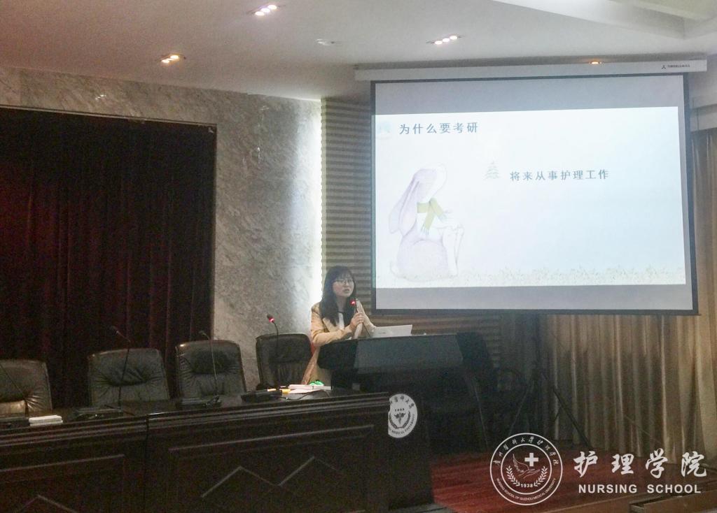 为了帮助同学们明确考研目标,掌握考研相关技巧,了解更多考研信息,4月26日下午,kaiyun开云官方网站在北校区道德讲堂举行了2019届毕业实习生考研经验交流会。kaiyun开云官方网站副院长刘志燕、教管科科长王秀红、学生科科长曾敏、内科护理学教研室李宇、辅导员李杏春、研究生代表方雯、推免生代表喻婷和2015级全体同学参加了本次交流会。会议由2015级辅导员李颖主持。