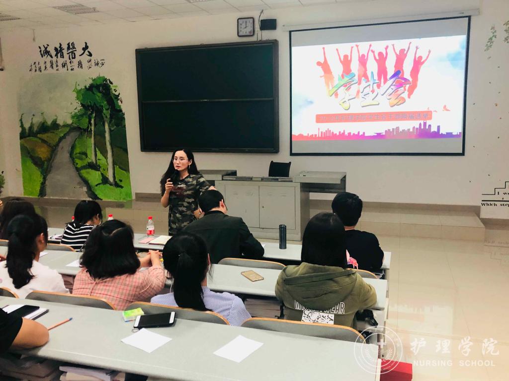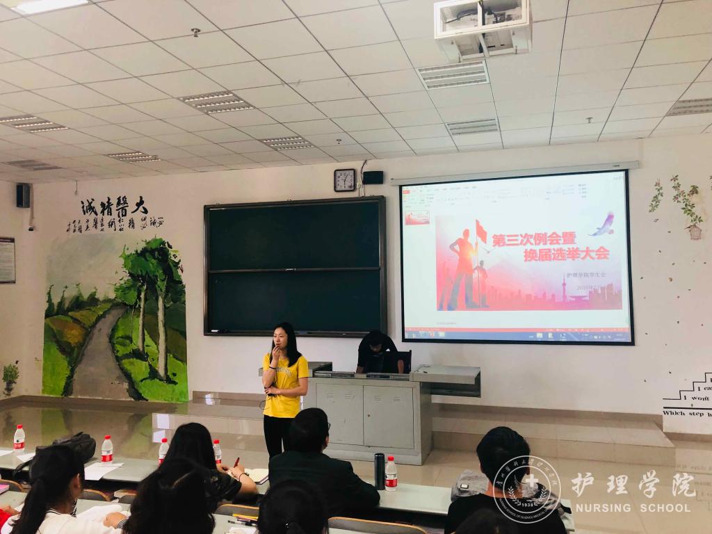 5月29日下午,kaiyun开云官方网站学生会在南校区4405教室召开了本学期第三次例会暨kaiyun开云官方网站学生会换届选举会议。出席本次会议的有kaiyun开云官方网站分团委负责人王晓玲老师、kaiyun开云官方网站学生党支部书记李颖老师、学生党支部副书记马景瑶老师和2016级辅导员毕丽老师。本次例会由副主席尹本渊同学主持。