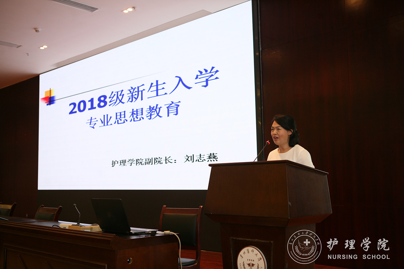 刘志燕为2018级新生作了以专业思想教育为主题的讲座。刘志燕从护理学的内涵,护理学的专业培养目标、能力要求、知识要求等方面对新生进行专业思想教育,使新生对护理学专业有了基本的了解,对大学四年的专业学习有了初步的规划。