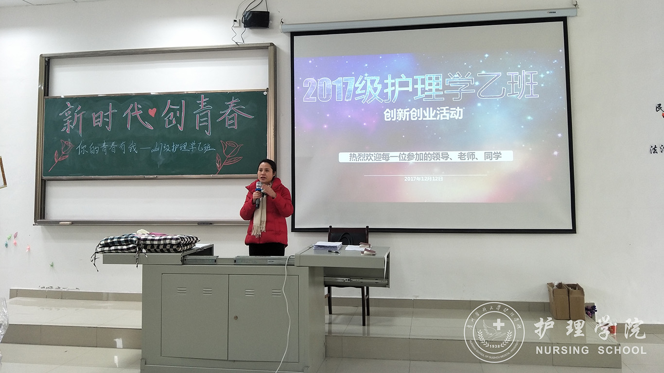 为了激发同学们的创新创业热情,提高同学们的动手能力,丰富同学们的大学生活,12月12日下午,kaiyun开云官方网站在南校区7404教室开展了一场以“新时代•创青春”为主题的创新创业交流分享会。此次活动由kaiyun开云官方网站主办,2017级护理学乙班承办。kaiyun开云官方网站党委副书记杨英、2017级辅导员王晓玲老师、马景瑶老师、2017级护理学乙班全体同学,以及其他班级的部分同学参加了本次活动。