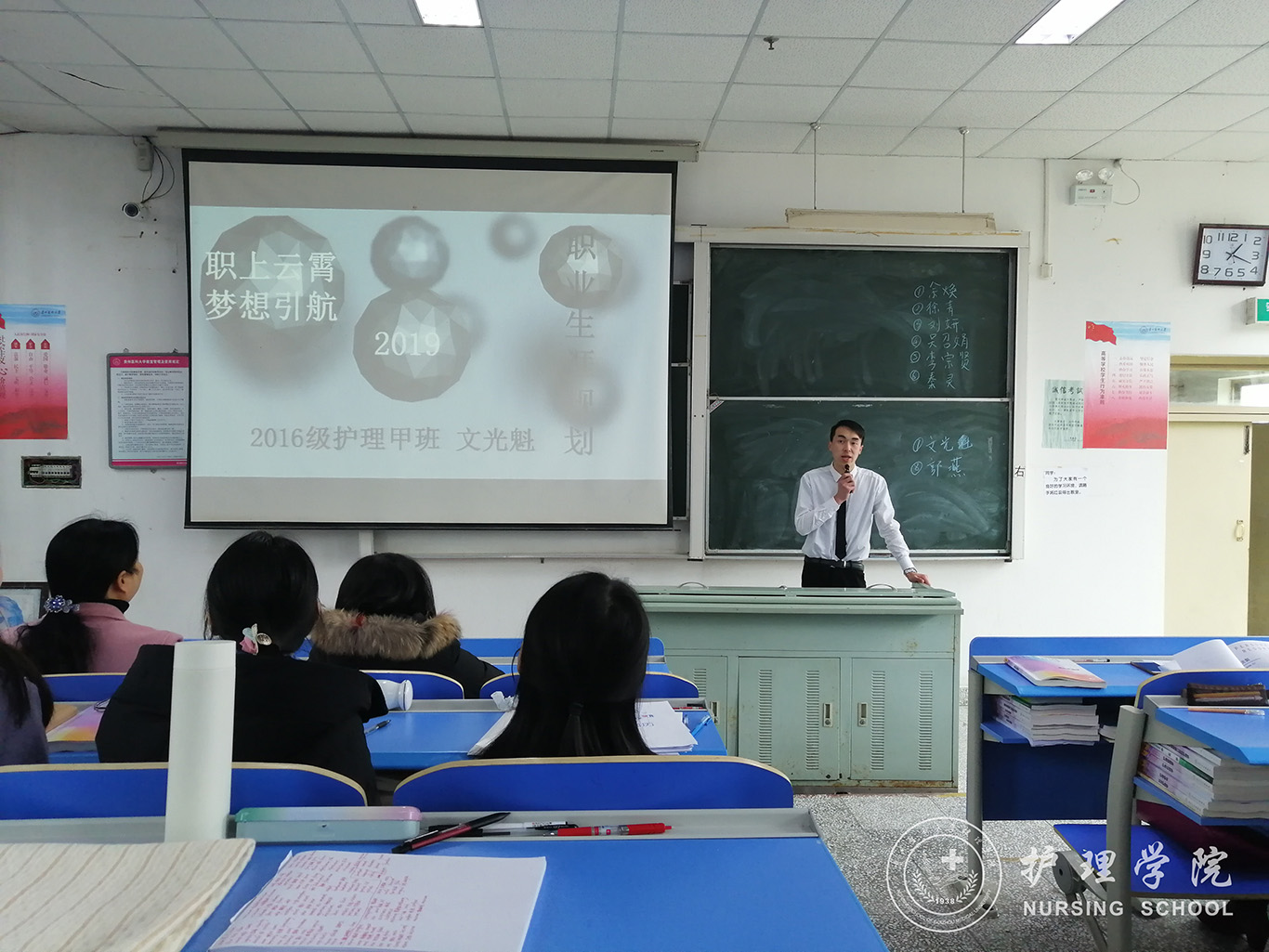 为了深入贯彻习近平新时代中国特色社会主义思想和党的十九大精神,把“稳就业”放在更加突出的位置,传播和普及职业规划和创业理念,引导大学生自觉树立择业和就业观,提高大学生就业、创业技能与实践能力,3月11日中午12:30,kaiyun开云官方网站在南北校区举办了学生职业生涯规划大赛暨校级选拔赛。kaiyun开云官方网站党委书记杨英、党委副书记王秀红、学生科科长曾敏、部分专职教师和辅导员担任评委,比赛现场吸引了来自各班级同学观看。