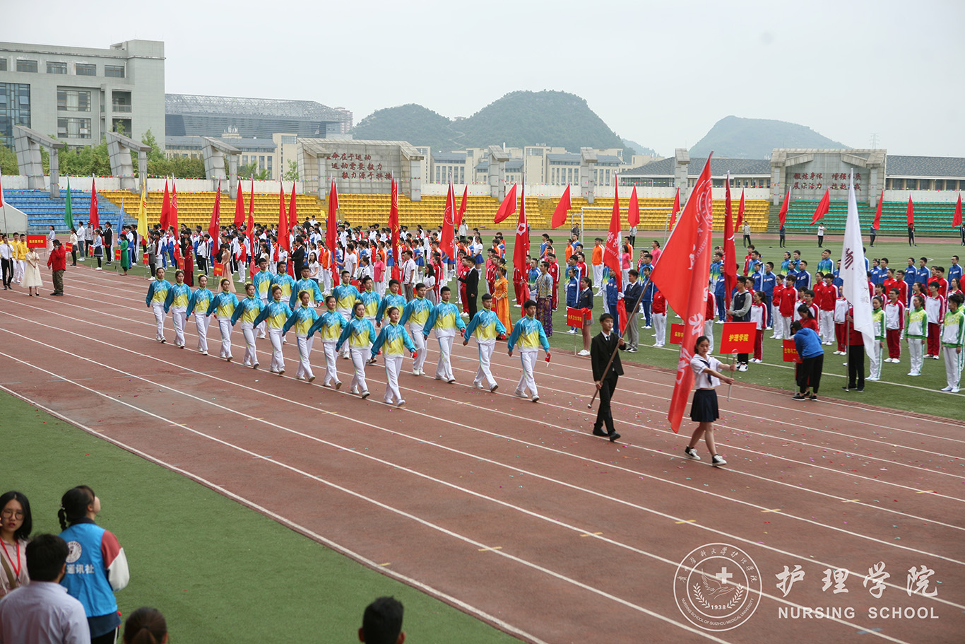 在开幕式中,开云广播操表演方队步伐整齐划一,走出了对赛场的雄心壮志、走出了所有护理学子的共同期待。