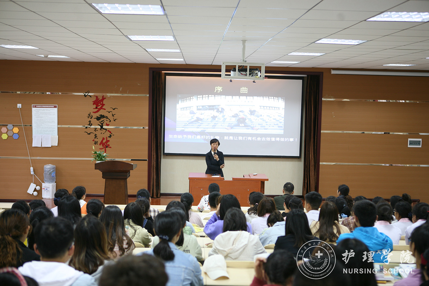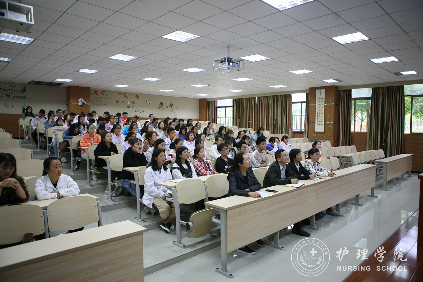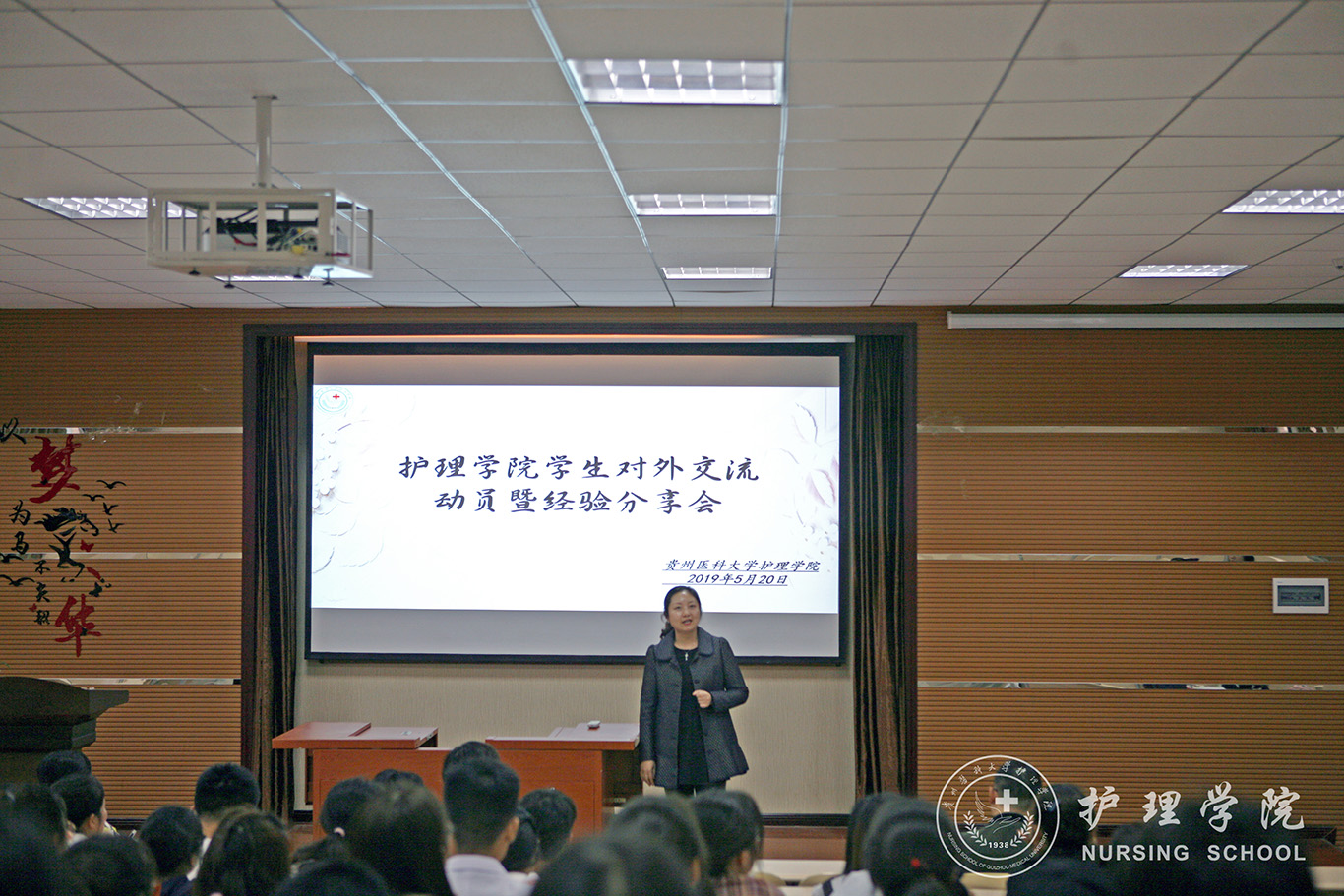 5月20日下午,kaiyun开云官方网站在南校区百川楼1101教室举办了学生对外交流动员暨经验分享会。学院党委副书记王秀红、学生科科长曾敏、辅导员李杏春、马景瑶及2017、2018级学生代表100余人参加了本次会议。分享会邀请了护理学2016级周婷婷、2017级戴雨曦两位同学作为主讲嘉宾,曾敏任主持。