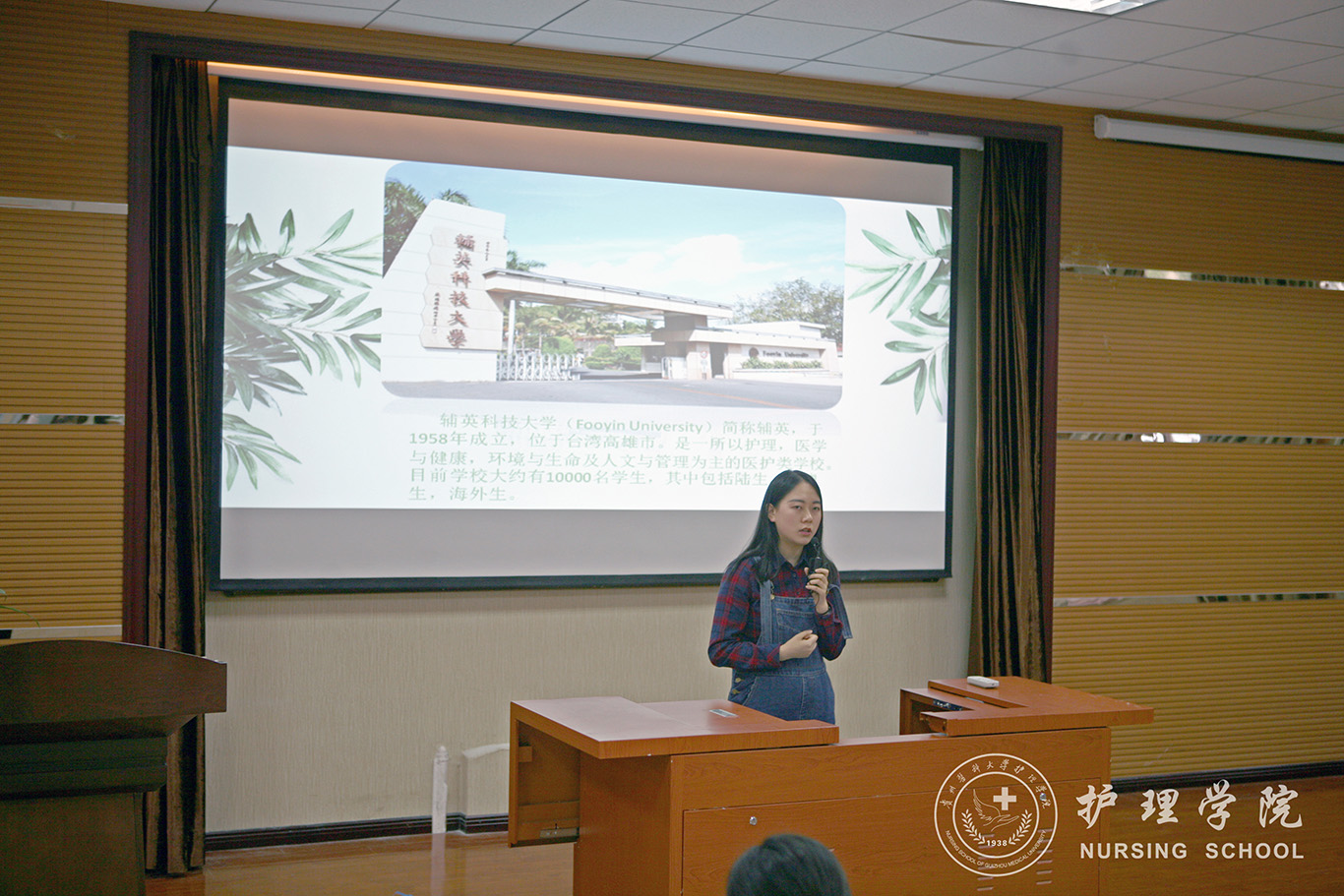 会上,周婷婷和戴雨曦分别给同学们分享了各自在台湾辅英科技大学交流学习的经历与感受。两位同学从学习氛围对自身学习习惯的影响、辅英的教学方式、学校师生对交流同学的关爱、参加社区义工活动、生活条件、经济支出等方面进行了讲述。生动真切的分享激发了在座同学对对外交流的了解和向往。