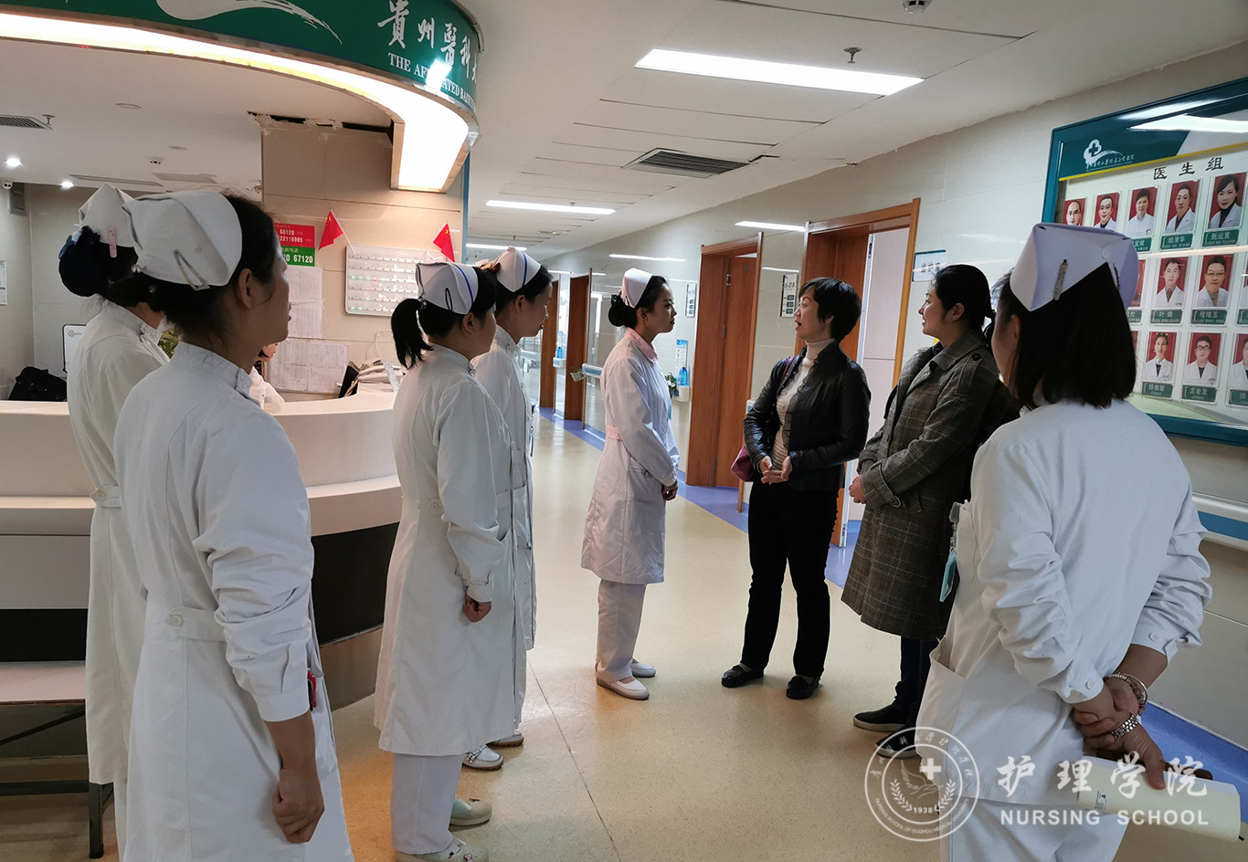 10月16日,kaiyun开云官方网站党委副书记王秀红、正科级组织员曾敏、内科护理学教研室副主任晏家芳、妇儿科护理学教研室副主任刘林敏、学生科副科长毕丽一行到附属白云医院就护理学(专升本)学生的培养进行交流并到各科室看望2016级实习生。附属白云医院副院长彭红英、副院长刘惠萍及教学办公室、各护理教育组老师参加了交流。
